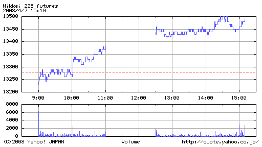 前場の上昇は見事。ただ巷で言われる新年度入りによる新規資金かは不明。