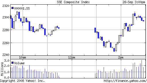 昨日まで今週中にも成立が見込まれていた米金融安定化法案が下院で否決されたことで大きく売られた。
