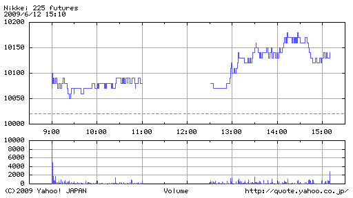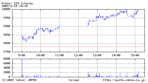 寄り底から上昇幅を拡大しあっさり1万円の大台に乗せたが、しっかり頭をおさえられ10,010円が限界。