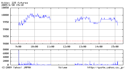 期末のドレッシング買い見込みや円高に一服感があって上昇期待だったが、日銀短観や米国の雇用統計を控えていることもあり、大台節目どころでは戻り待ちの売りに押され、9,900円台後半の高値揉み合いの嫌なムードに。