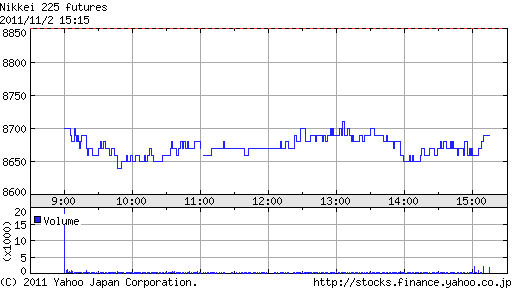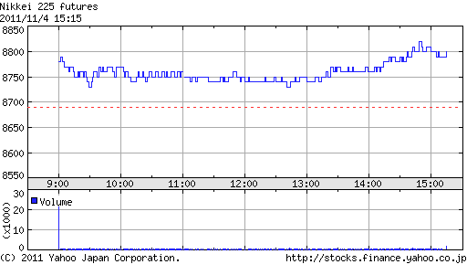 今晩以降のユーロ圏財務相会合、米経済指標、ベージュブック次第かと思っていたが、ナイトでは薄商いもあってか棒上げ上昇。