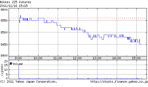 日経平均株価 終値 8,434.61 (-43.21)