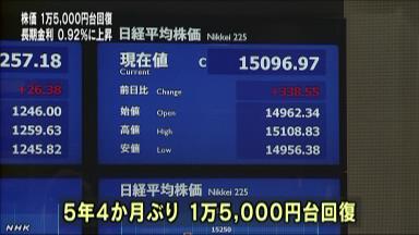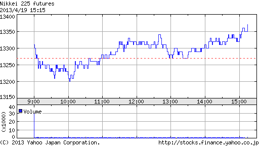 日経平均株価 終値 13,774.54(+185.51)