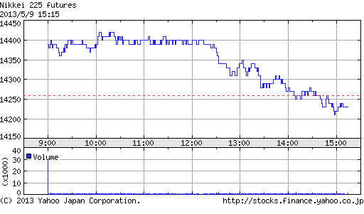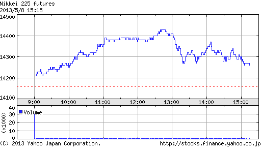 4月末終値13,880円を上回れば10ヵ月連続上昇となり小泉郵相場の9ヵ月連続上昇という記録を更新するところだったが、皮肉にも最後の月足が最大の上髭陰線で記録更新ならず。