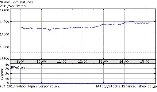 日経225先物 終値 13,700(+90)