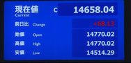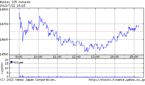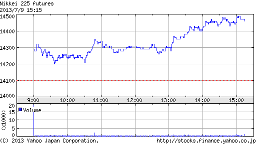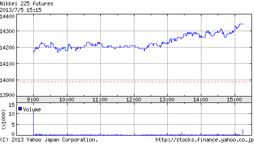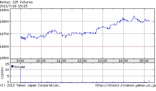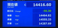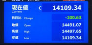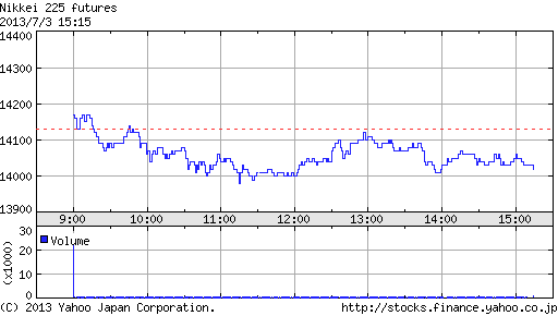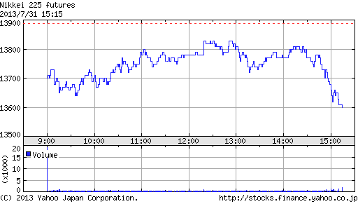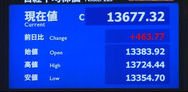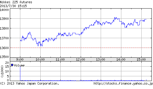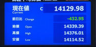 午後にかけて一段高し、一時高値13,840円まで上昇する場面もあったが、上海時間に急反落。