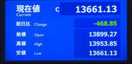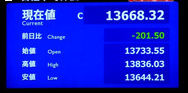 日経平均株価 終値 13,668.32(-201.50)