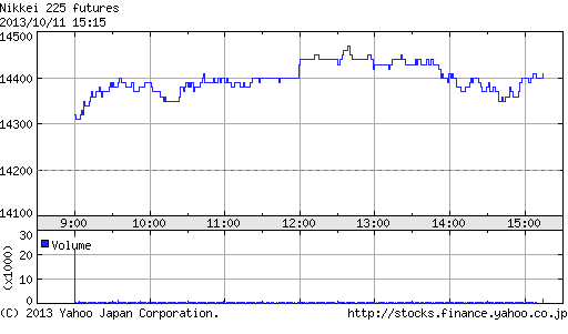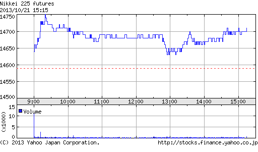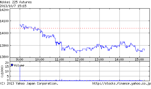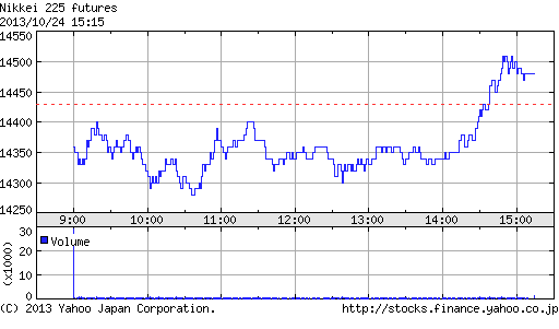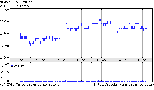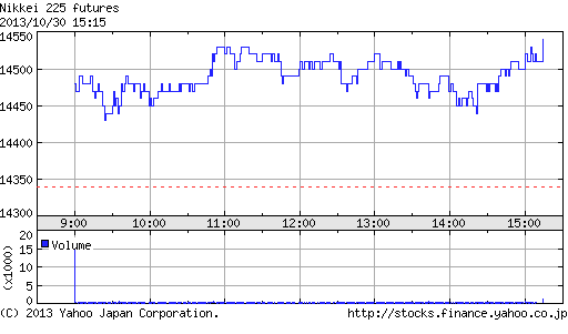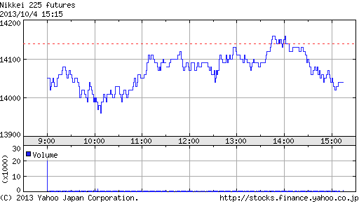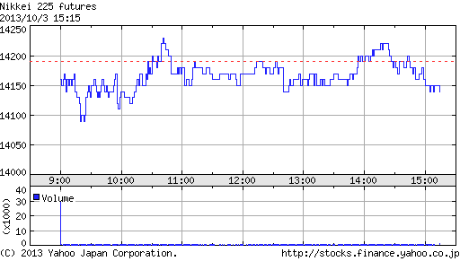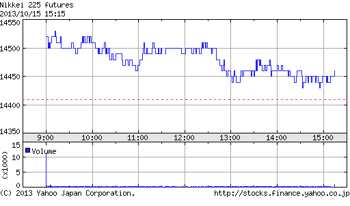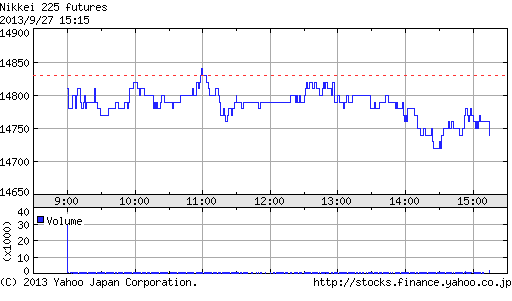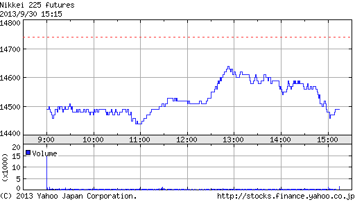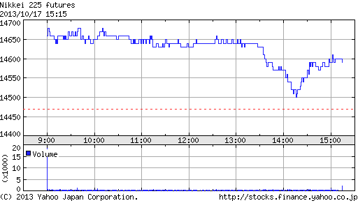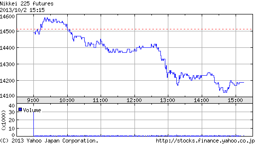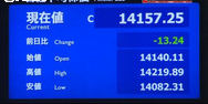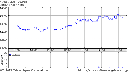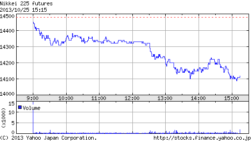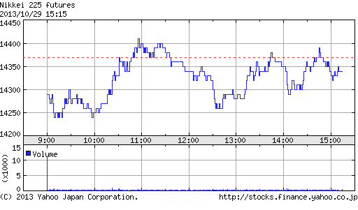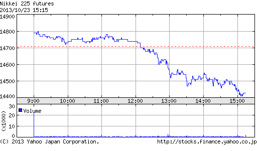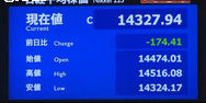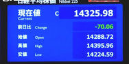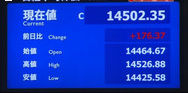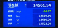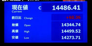 一時安値14,320円まで下げ幅を拡げ結局ほぼ安値引けで終えている。