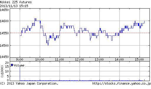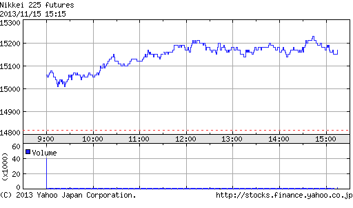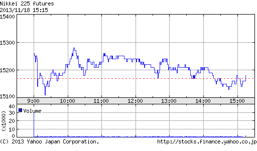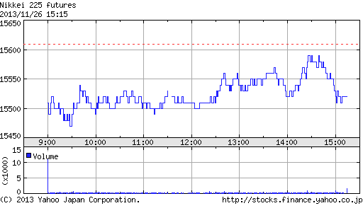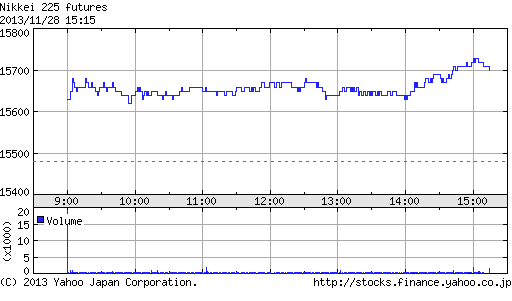 前日高値の15,740円を10円更新し15,750円をつける場面もあったが、間もなく失速。