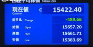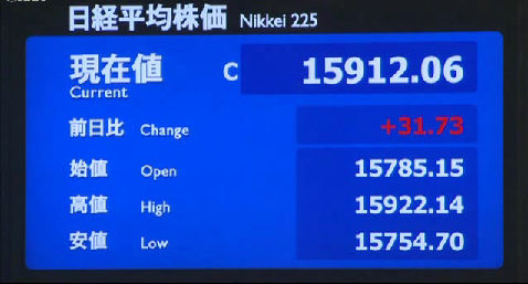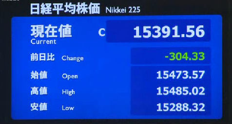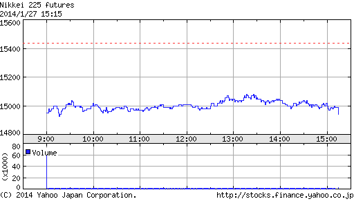 日経平均株価 終値 14,914.53(-92.53)