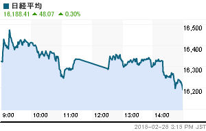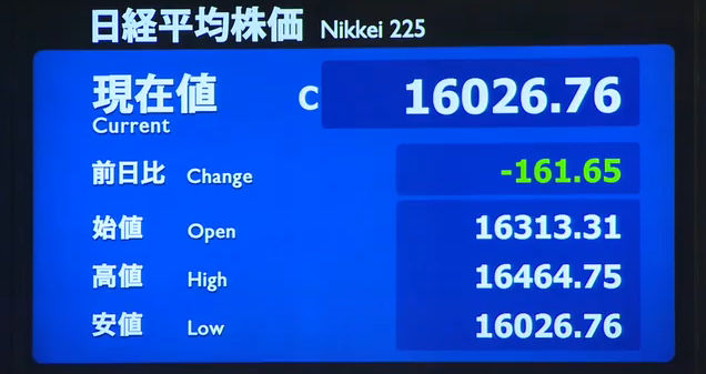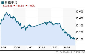 1万6千の大台が意識されると下げ渋る場面もあったが、引けにかけて一段安した。