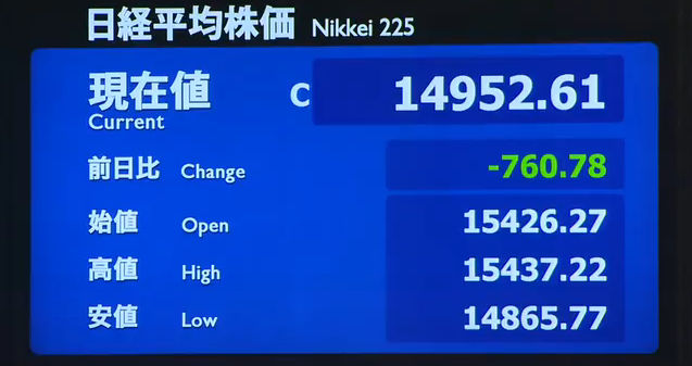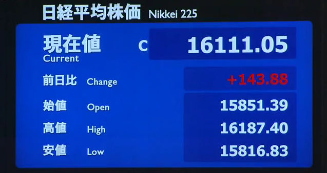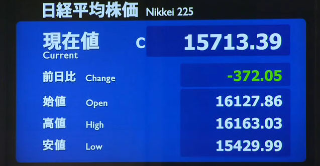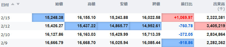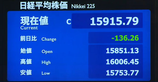 現物の取引終了後、あっさり大台を割り込み15,930円まで突っ込んで終えている。