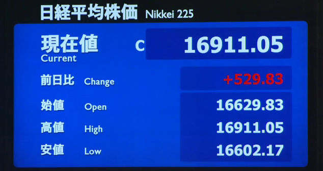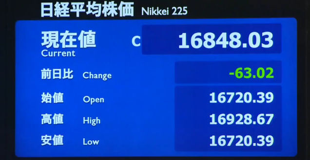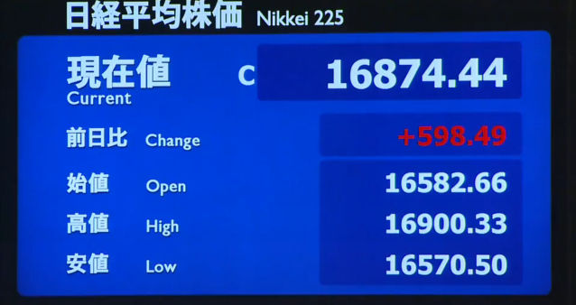 大引けは16,500円をつけ、高安1,080円幅を記録。