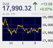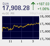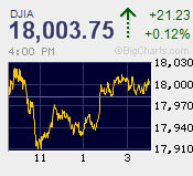 ダウは続伸し取引終了にかけて上げ幅を拡大し1万8千の大台を回復して終えている。