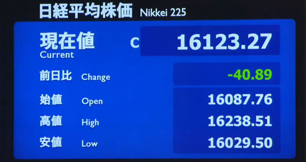 日銀ショック 高安1,080円幅の大往来 金融政策現状維持決定を受け千円の棒下げ商状