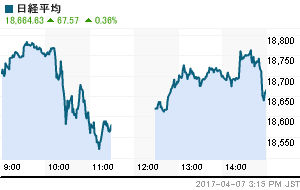 日経平均株価 終値 19,196.74(-55.13)