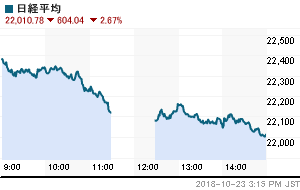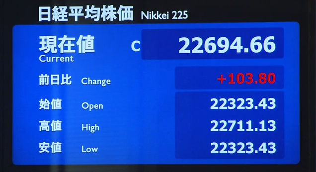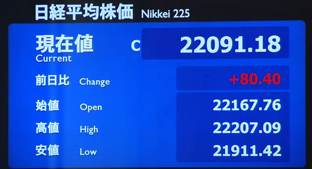日経平均株価 終値 21,920.46(+463.17)