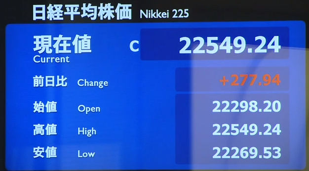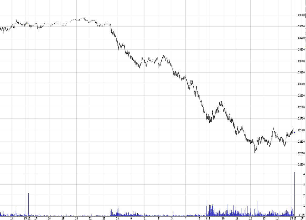日経平均は続急伸 高寄りから更に高安350円幅を巻き戻し