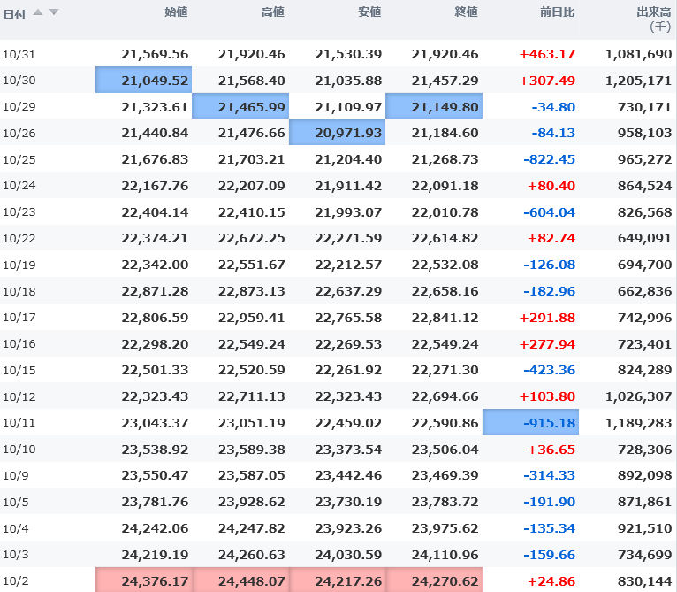 高値 21,920.46
