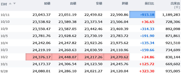 高値 21,910