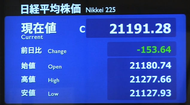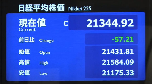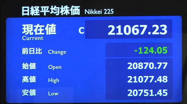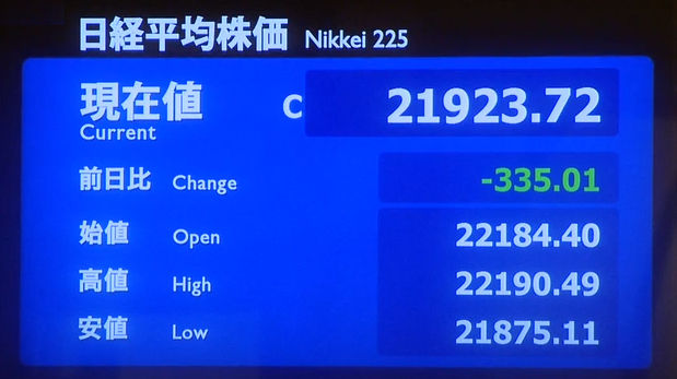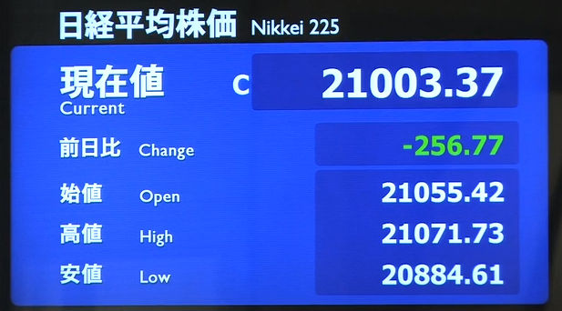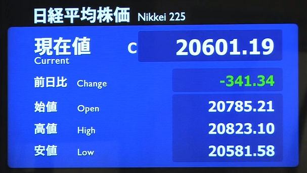 日経平均は3日続急落。終値ベースで2月8日以来の安値水準に。