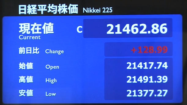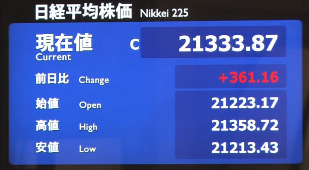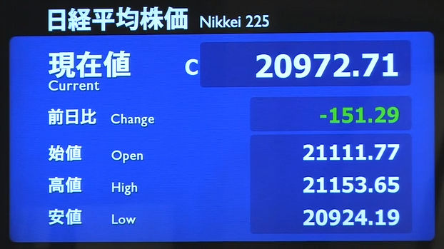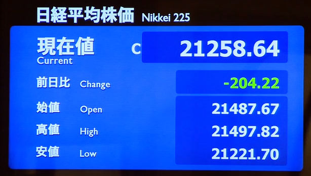 日経平均株価 終値 21,275.92(-62.25)