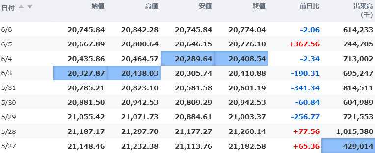 高値 21,324.93