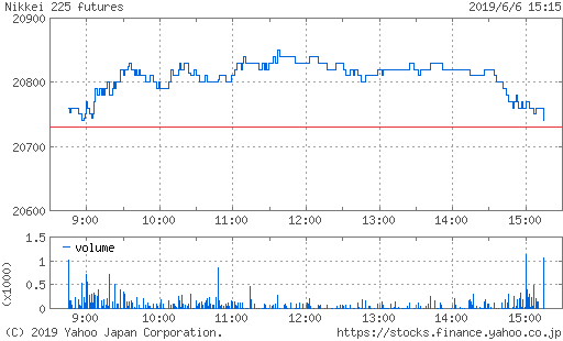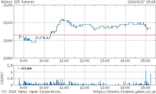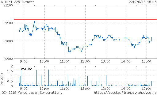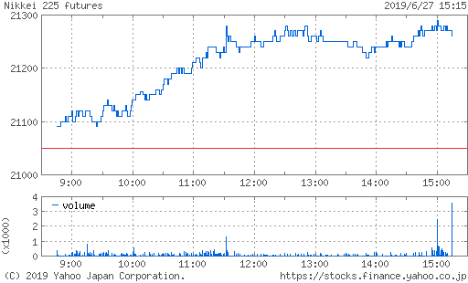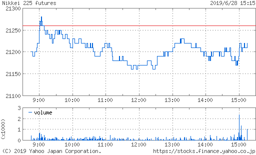 一時安値21150円まで下げ幅を拡大する場面もあったが、本日よりG20大阪サミットが開催され、様子見ムード。
