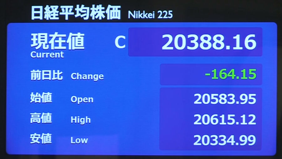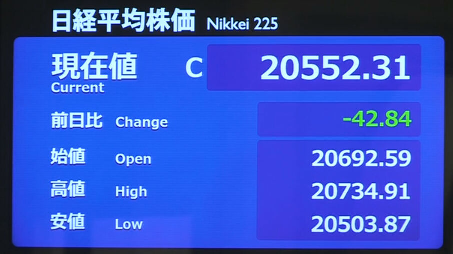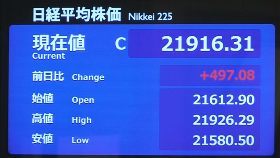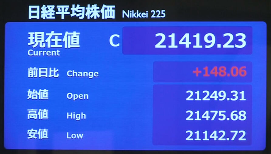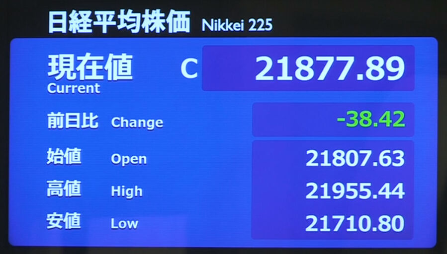 日経平均株価 終値 21,877.89(-38.42)