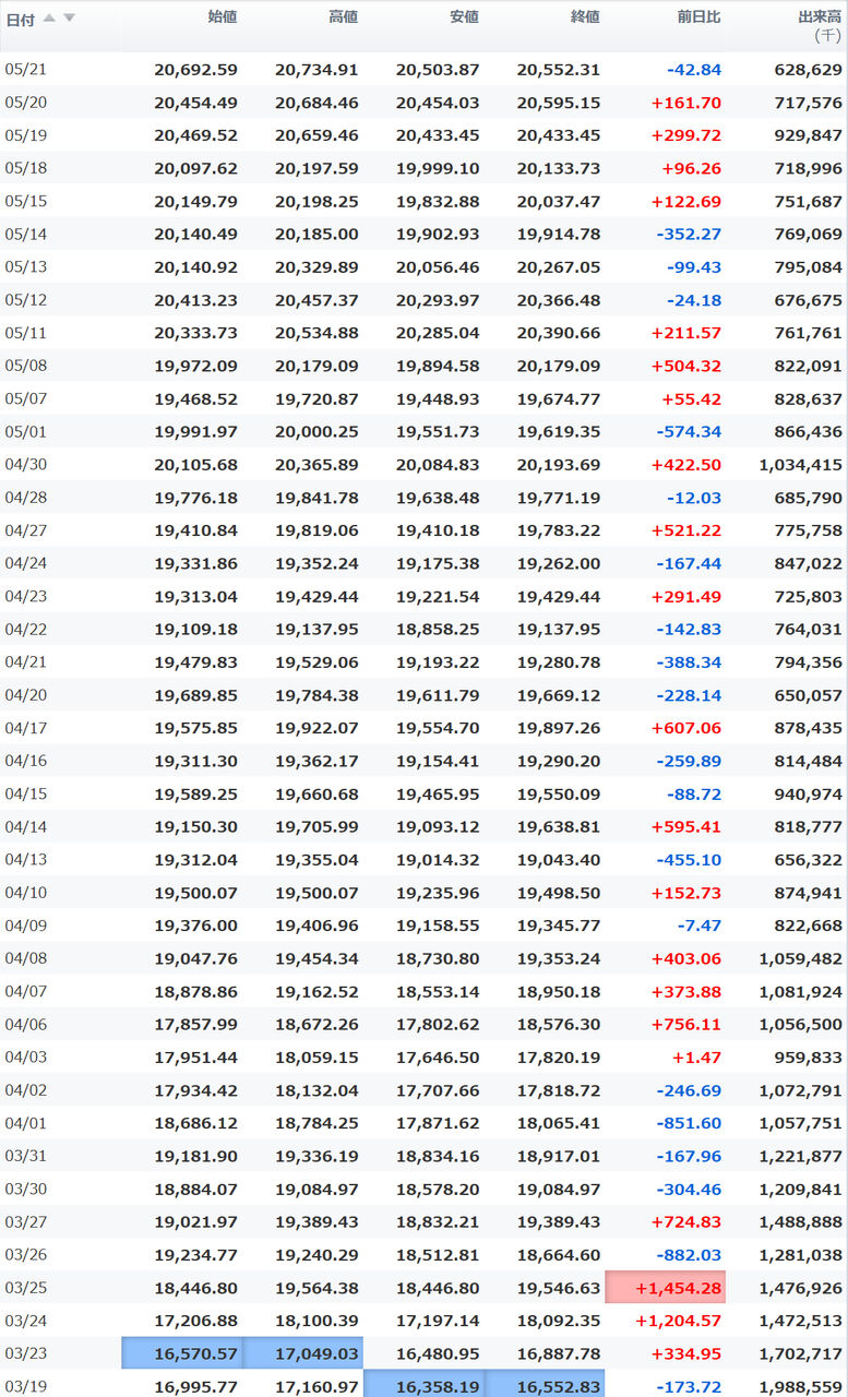 高値 21,955.44