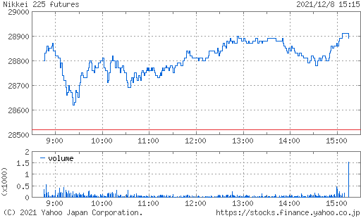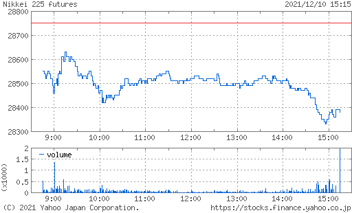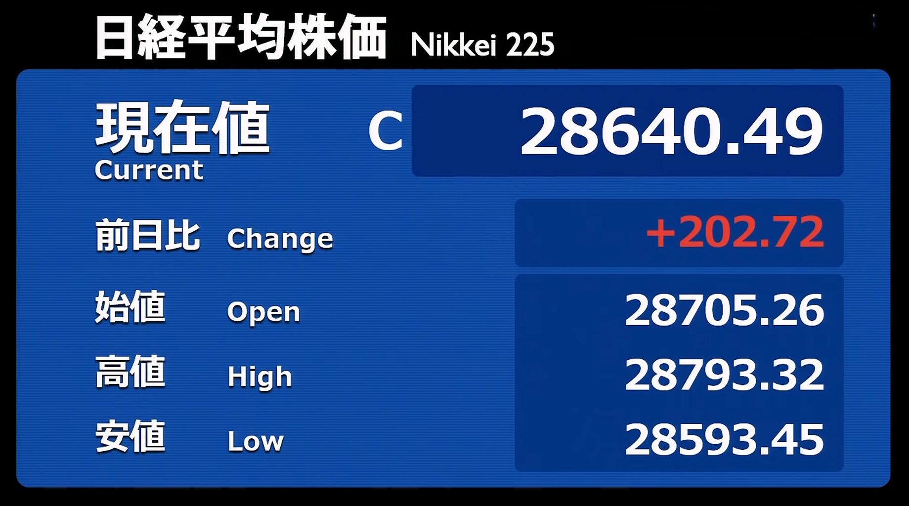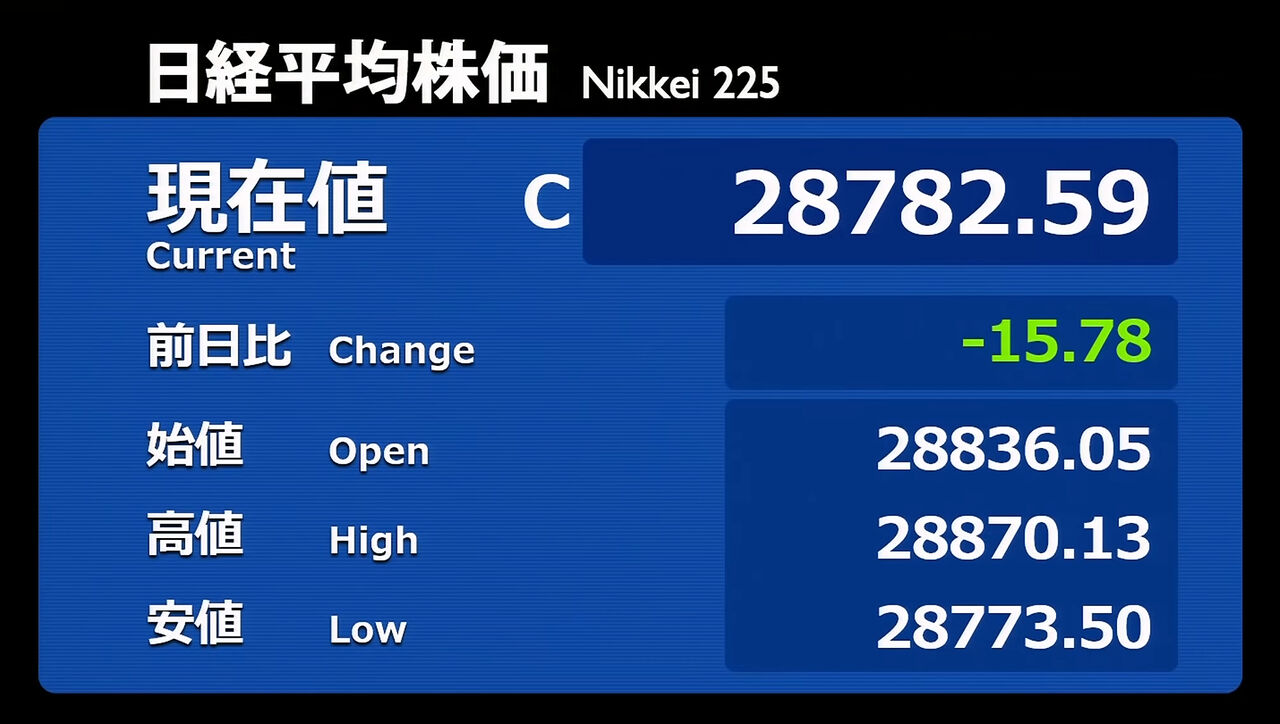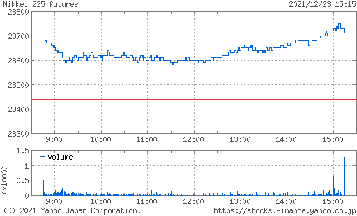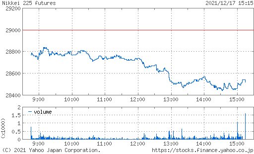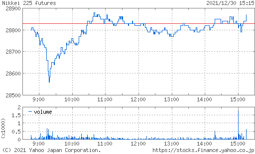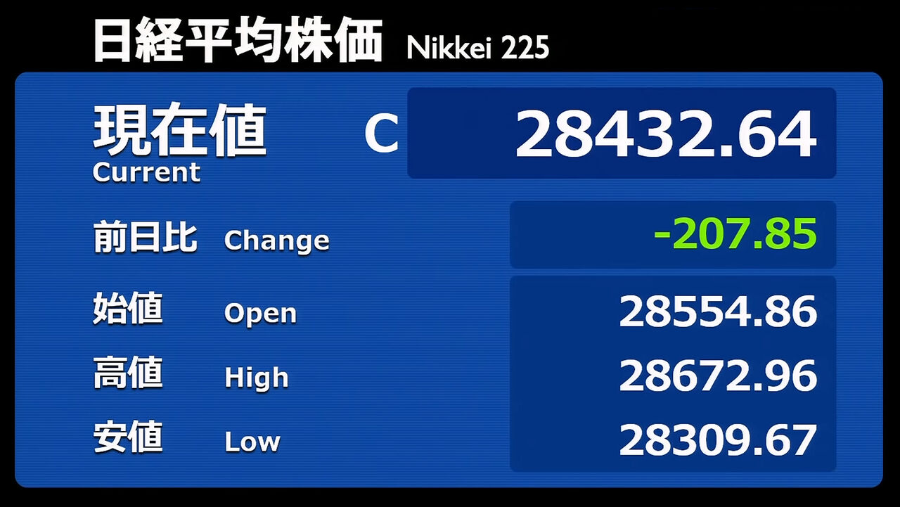 日経平均は続落。先物は110円GUで始まり、序盤は戻り売りが先行し、一時安値28,550円まで突っ込む場面もあったが、間もなく切り返し、上海開場とともに一段高。