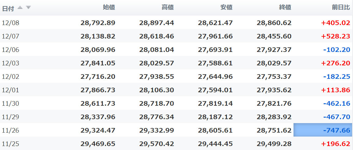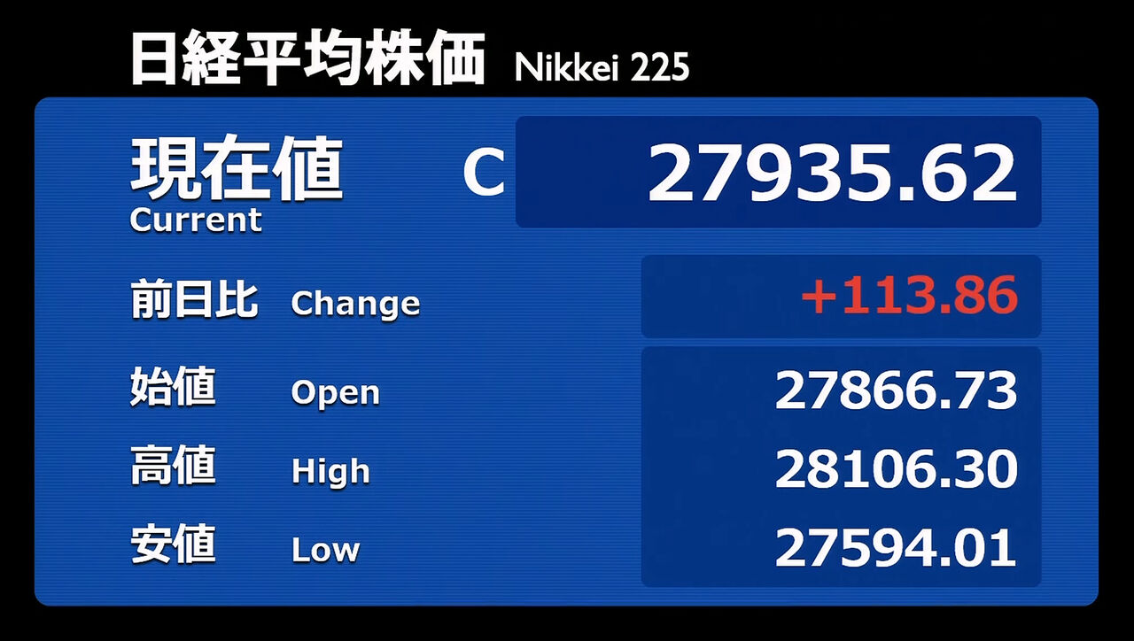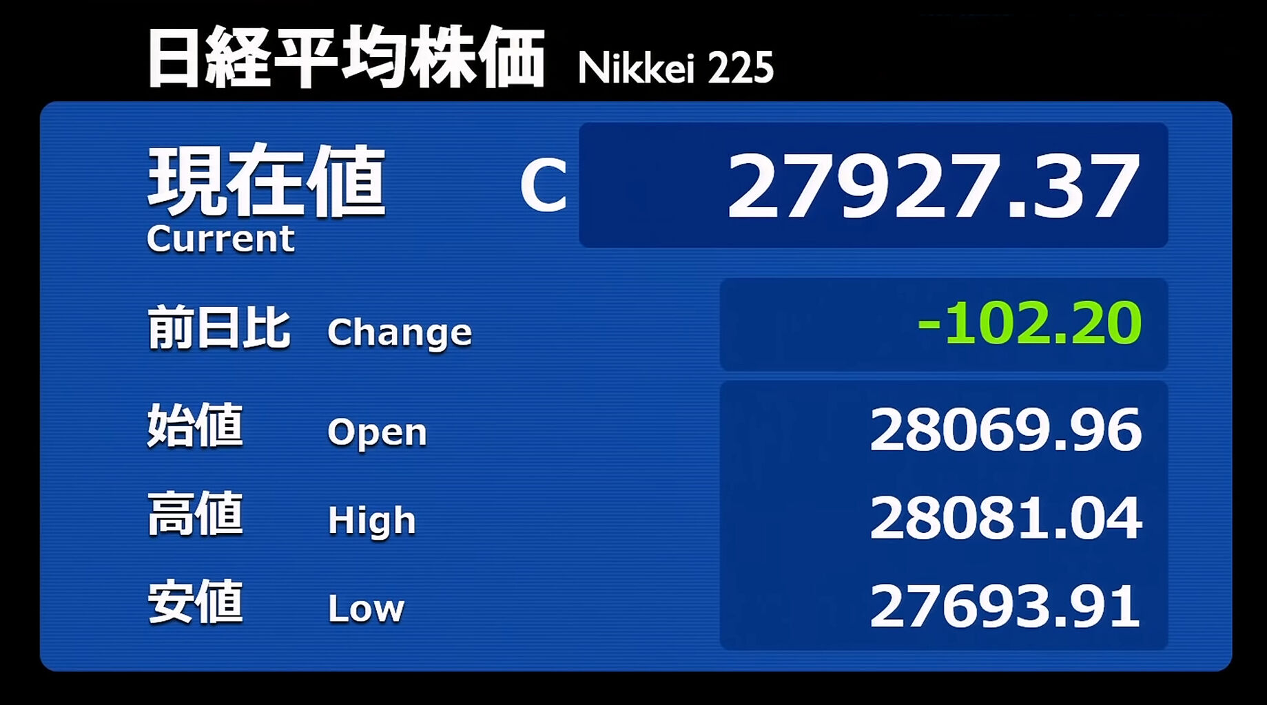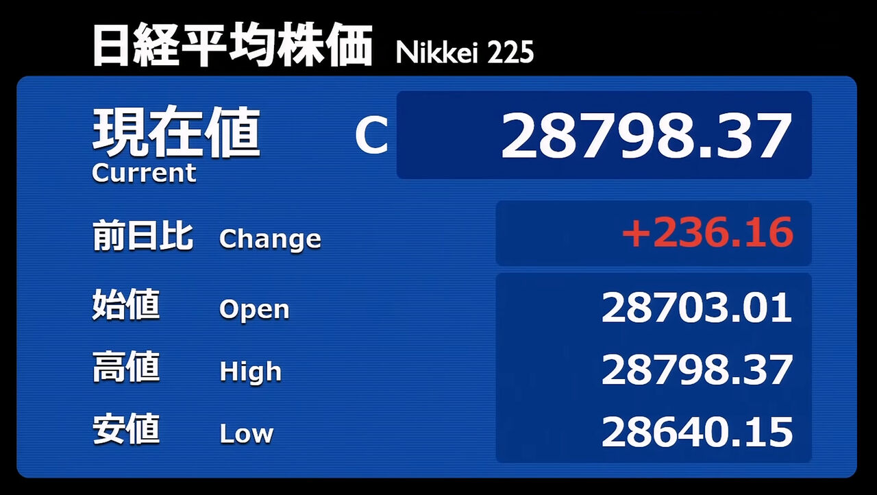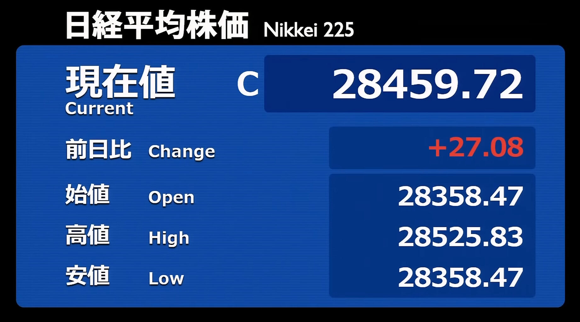 日経平均は続落。先物は110円GUで始まり、序盤は戻り売りが先行し、一時安値28,550円まで突っ込む場面もあったが、間もなく切り返し、上海開場とともに一段高。