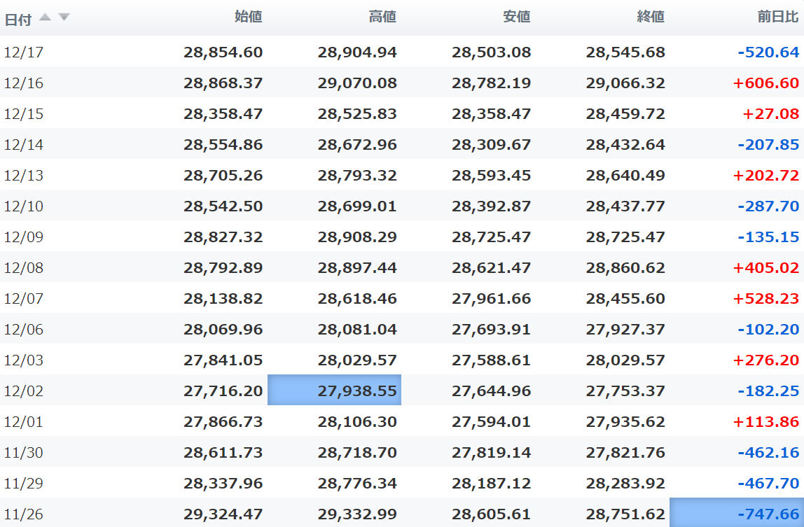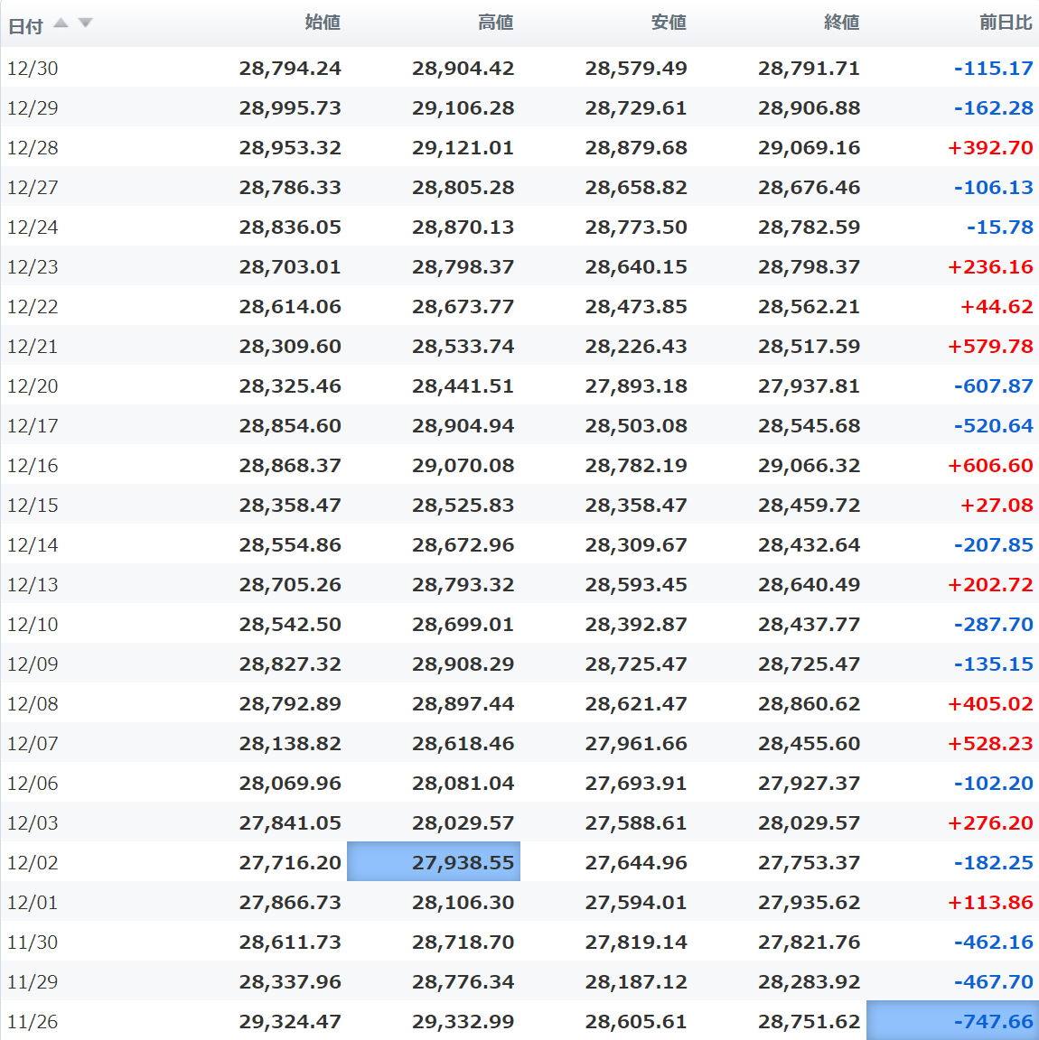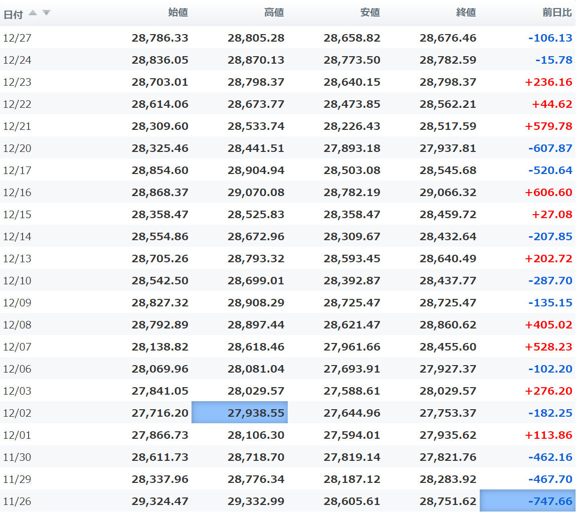 年初は2月にワクチンによる正常化期待が強まり、2月15日には30年ぶりの高値を回復。翌2月16日には30,715.52円をつけたものの、夏には8月20日に場中安値で2万7千円割れまで突っ込んだ。