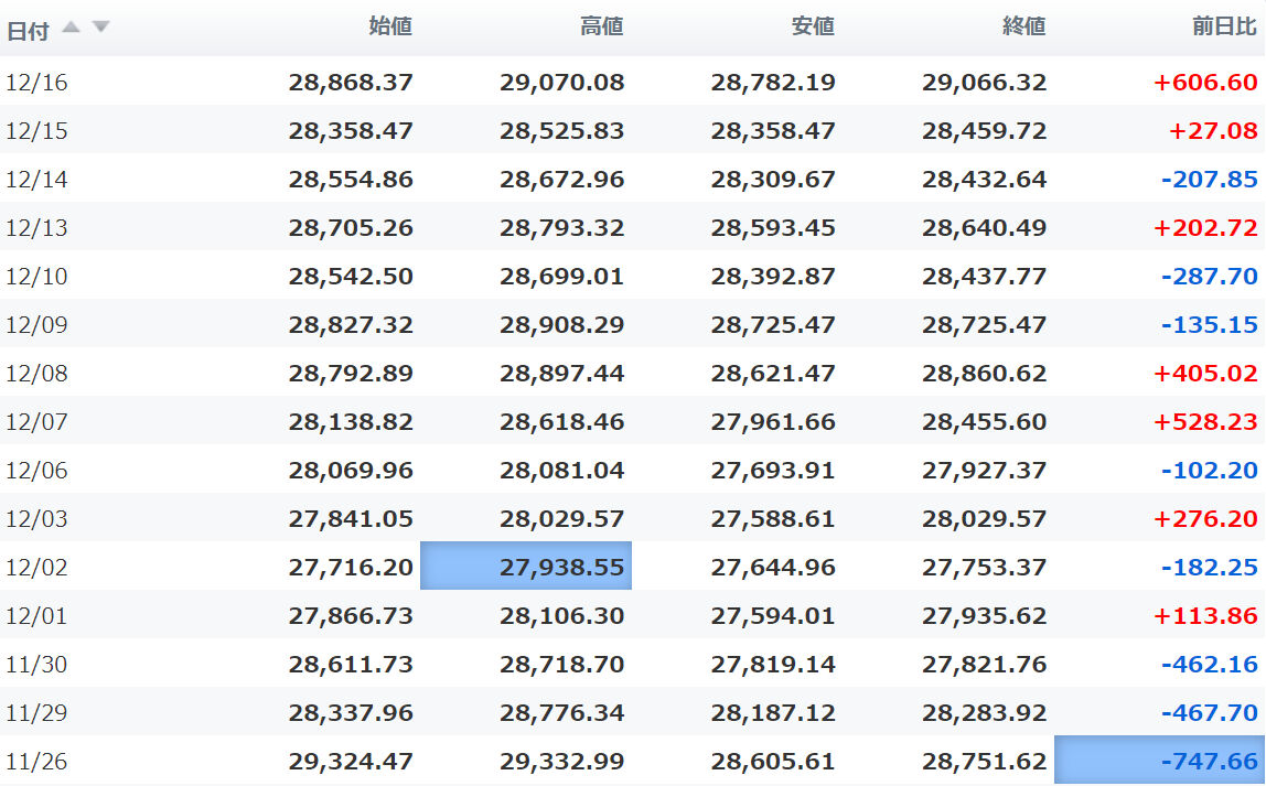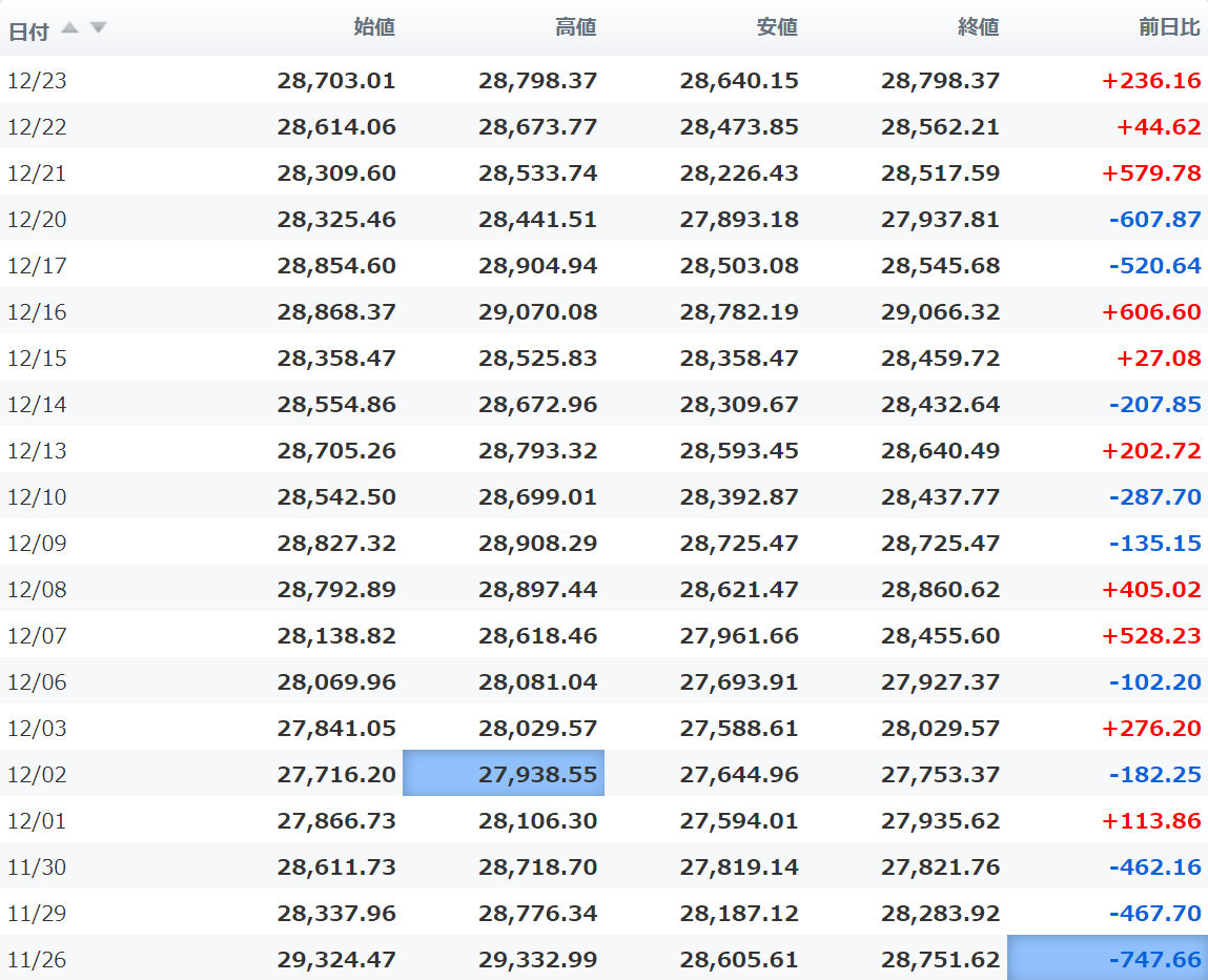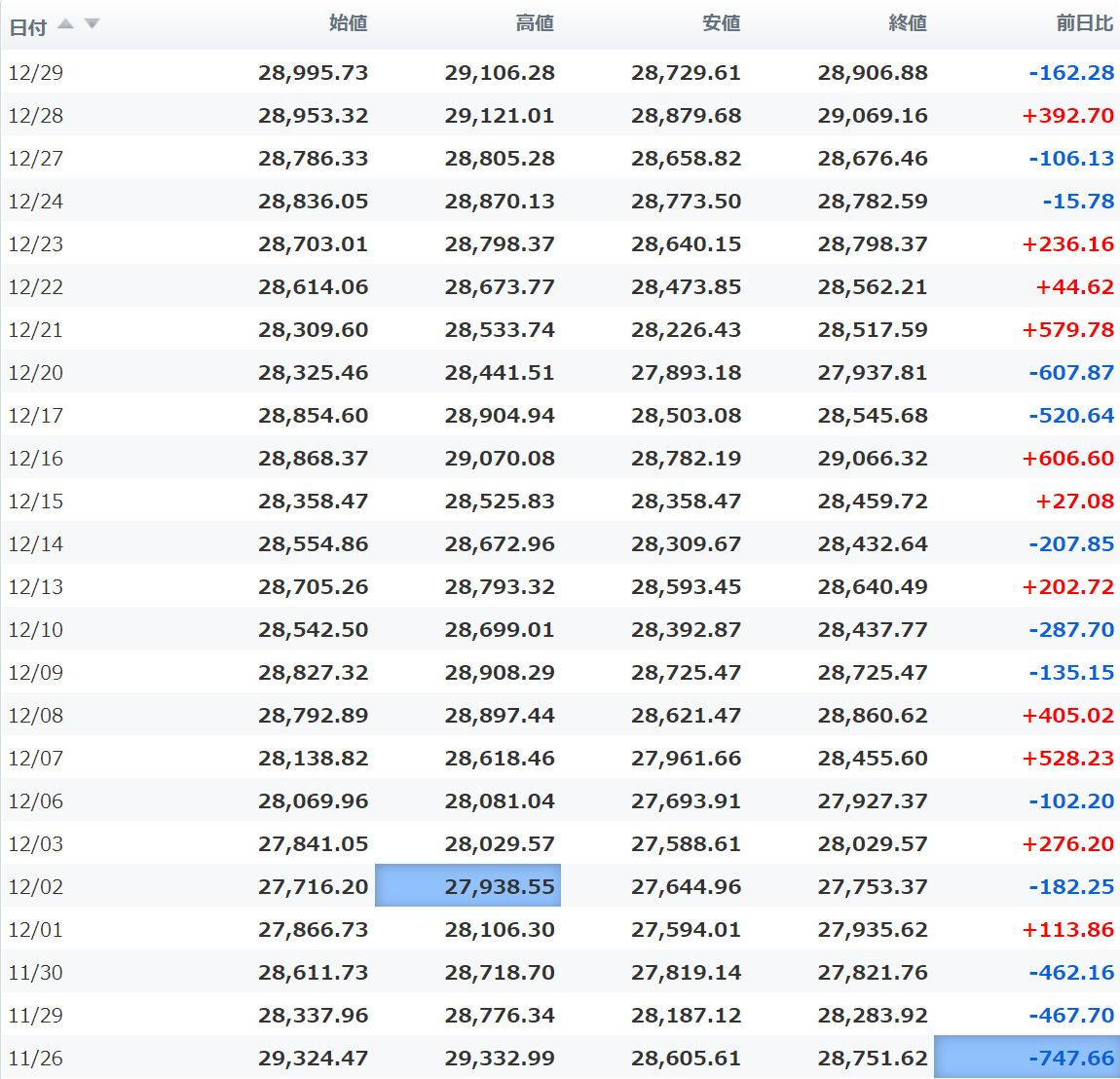 年初は2月にワクチンによる正常化期待が強まり、2月15日には30年ぶりの高値を回復。翌2月16日には30,715.52円をつけたものの、夏には8月20日に場中安値で2万7千円割れまで突っ込んだ。