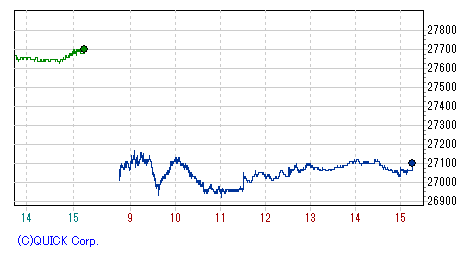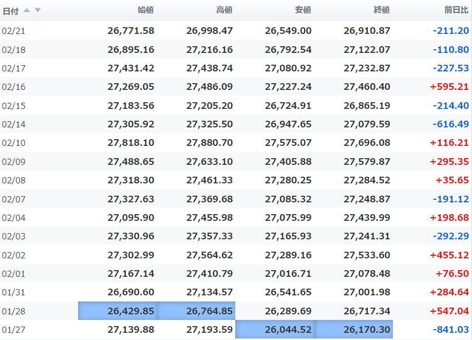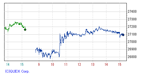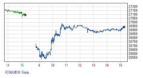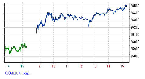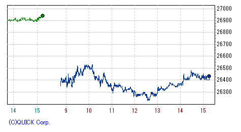 売りが先行し、一時安値26,260円まで突っ込むが、すぐさま一時高値26650円まで切り返す場面も。