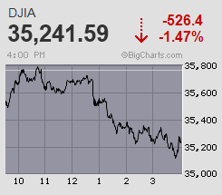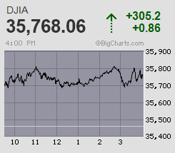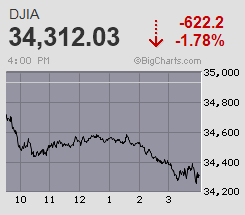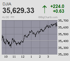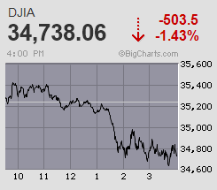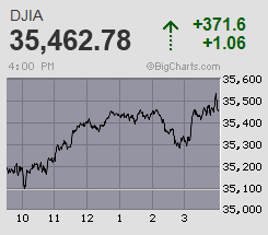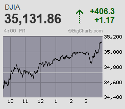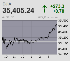 ダウは834ドル高。ここまでの大返しは2020年11月9日の同じ834ドル高まで遡らなければならない。