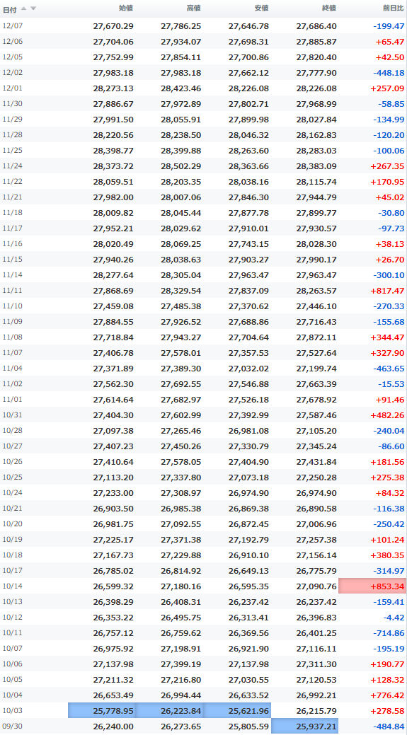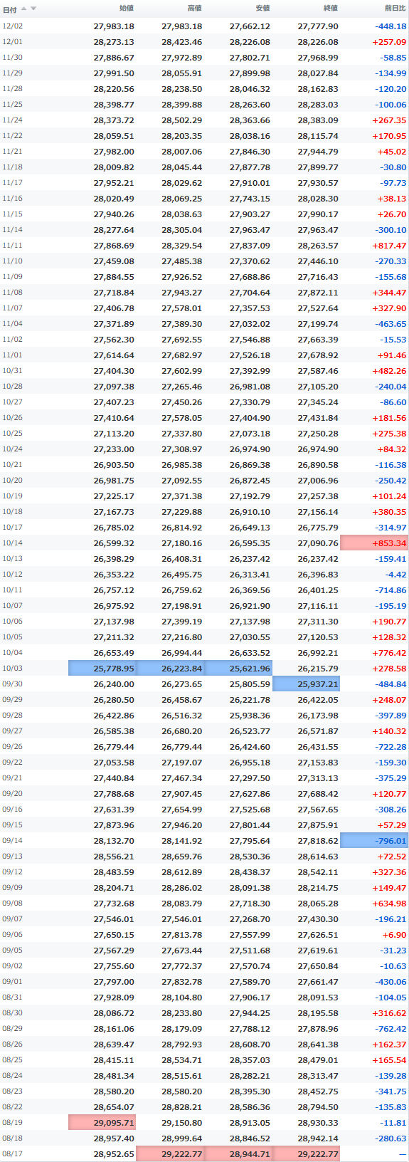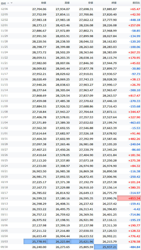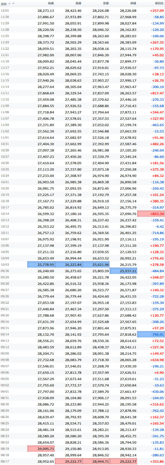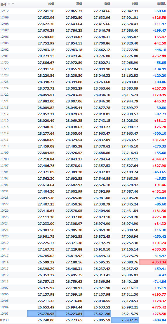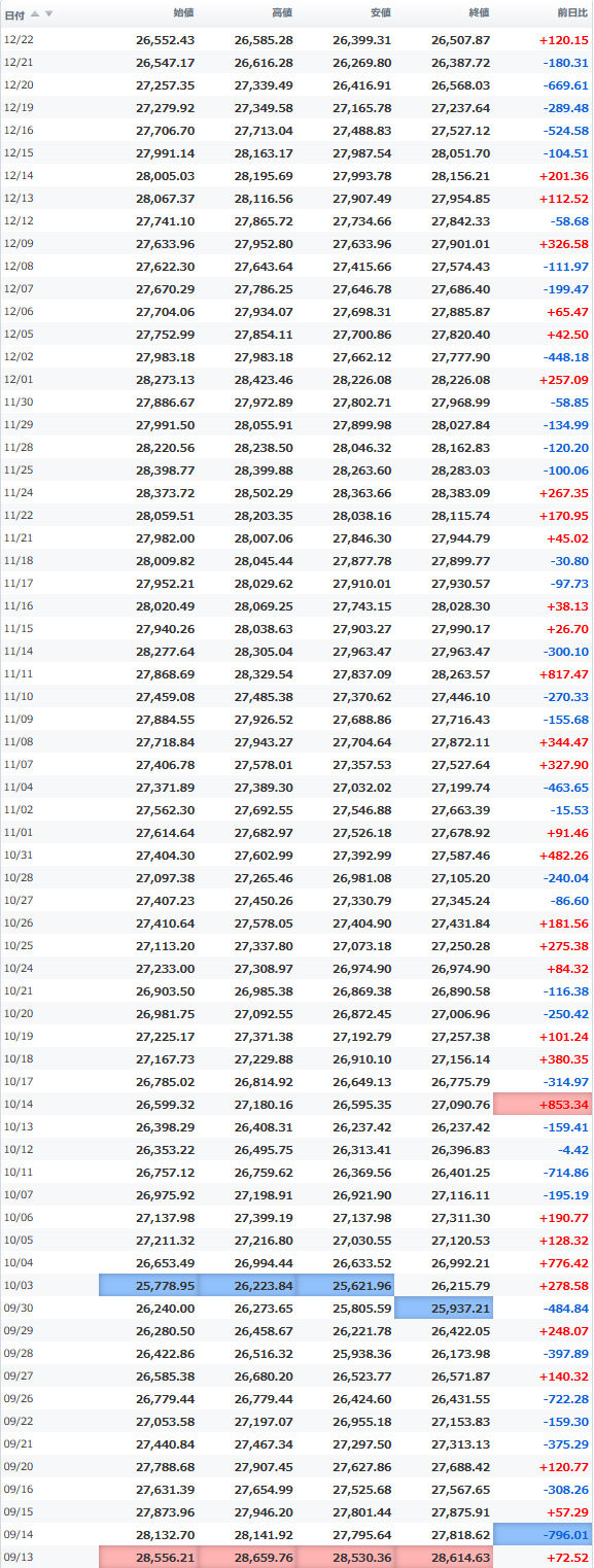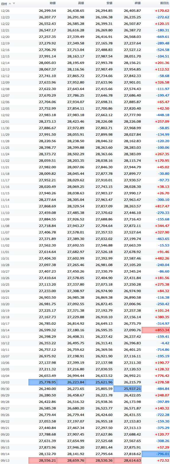 安値 26,067.92