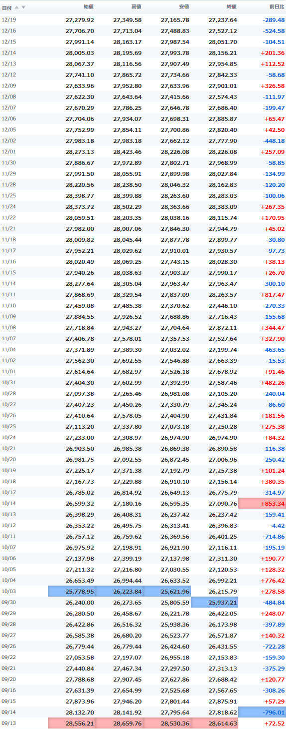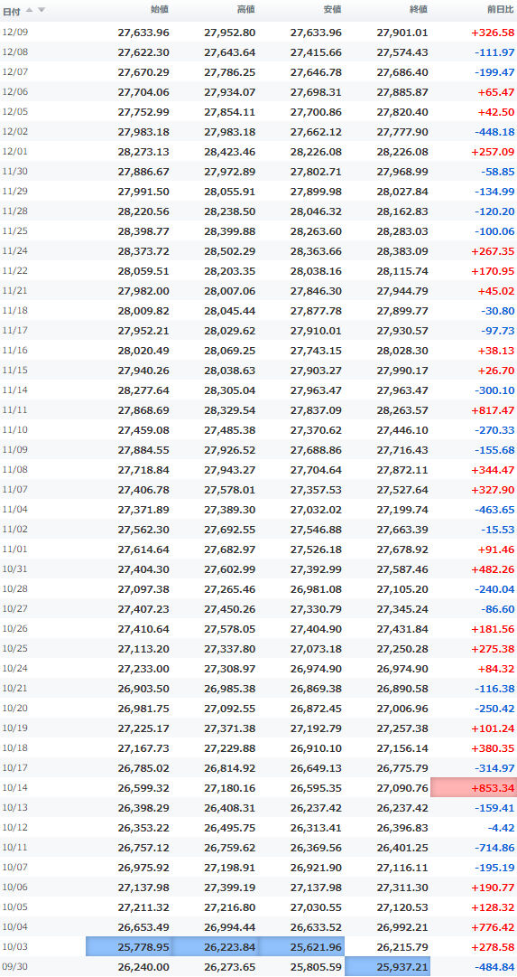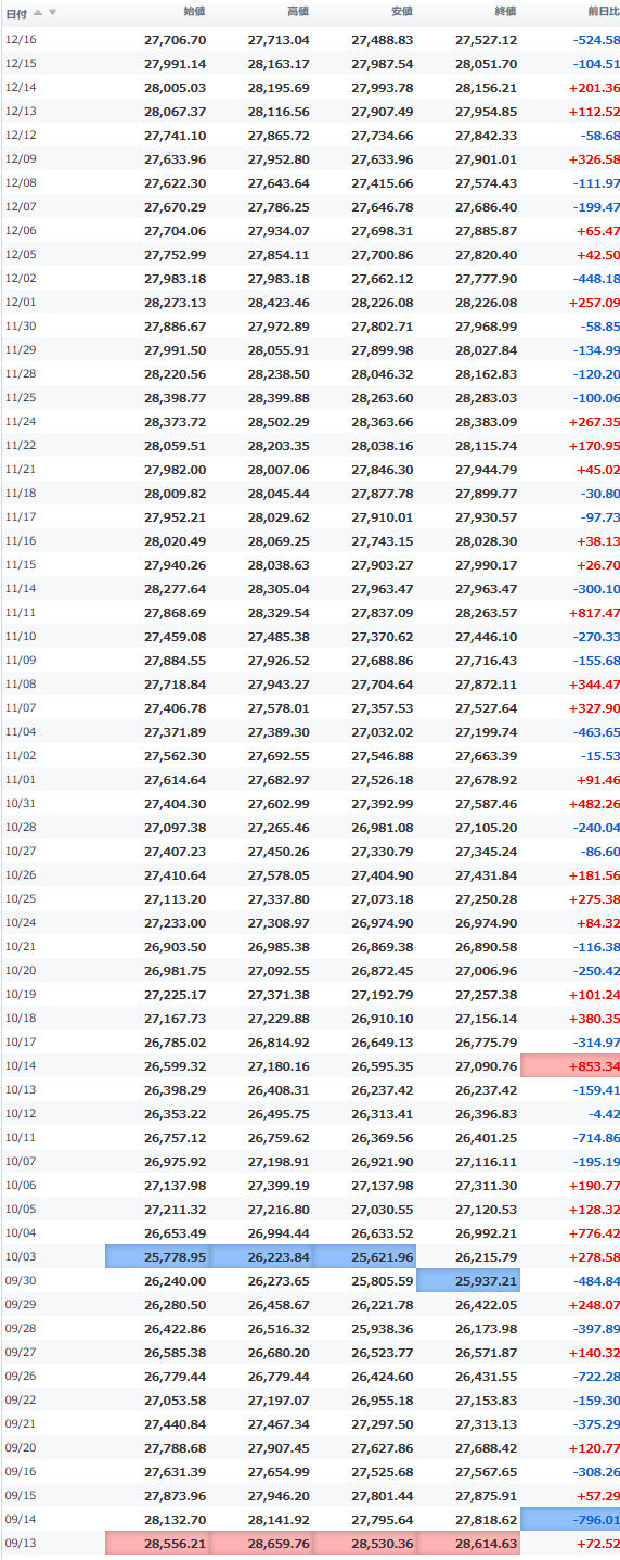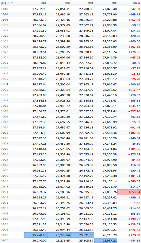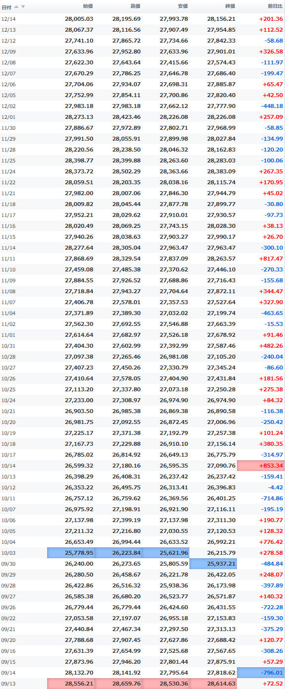 一時安値25,980円をつけながらほぼ安値引けで終えている。