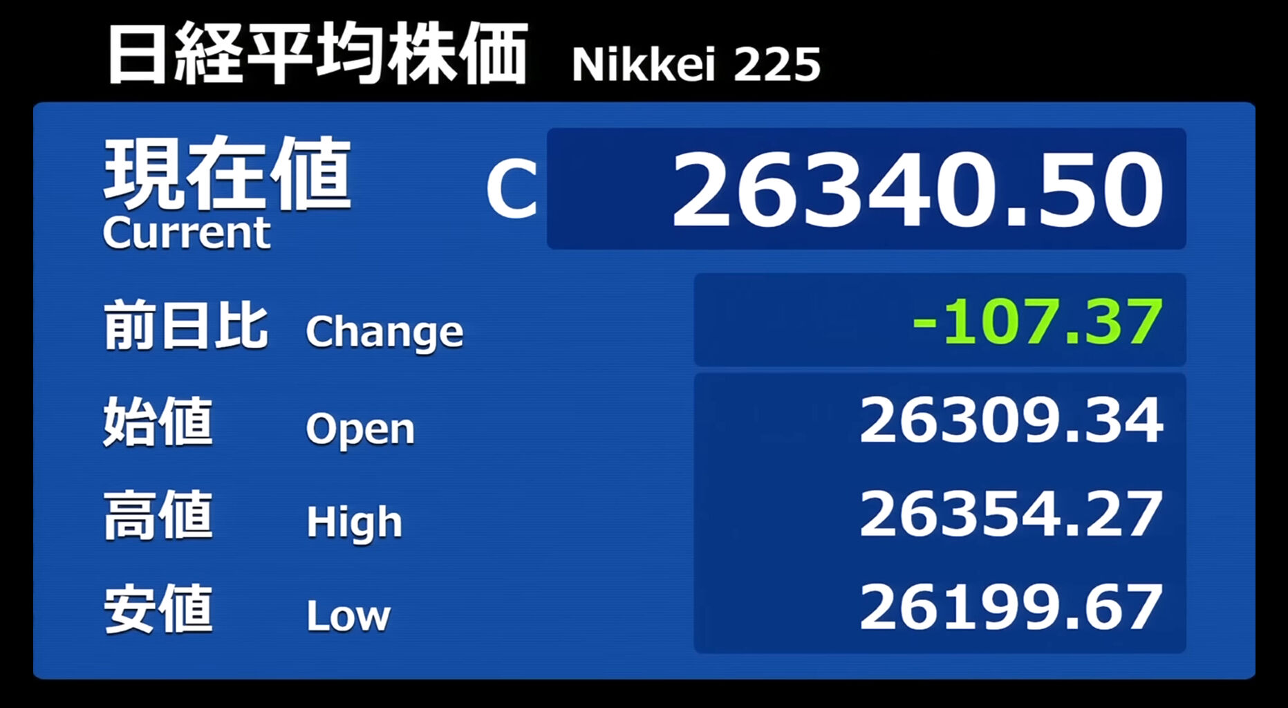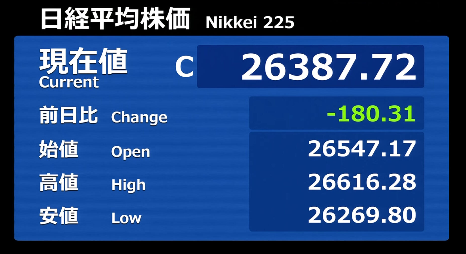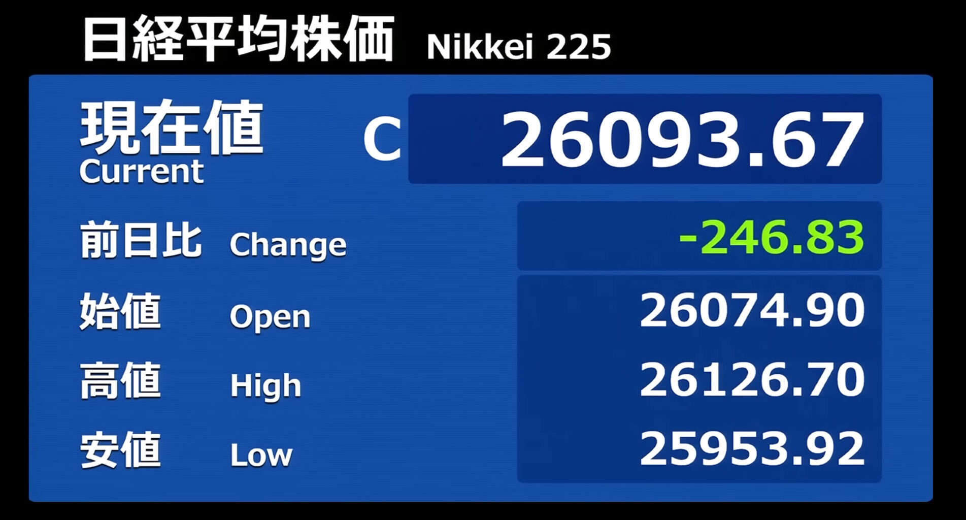 日経平均株価 終値 26,094.50(+0.83)