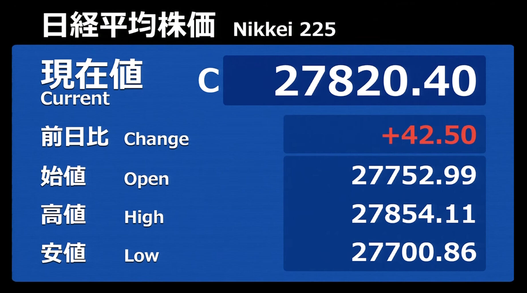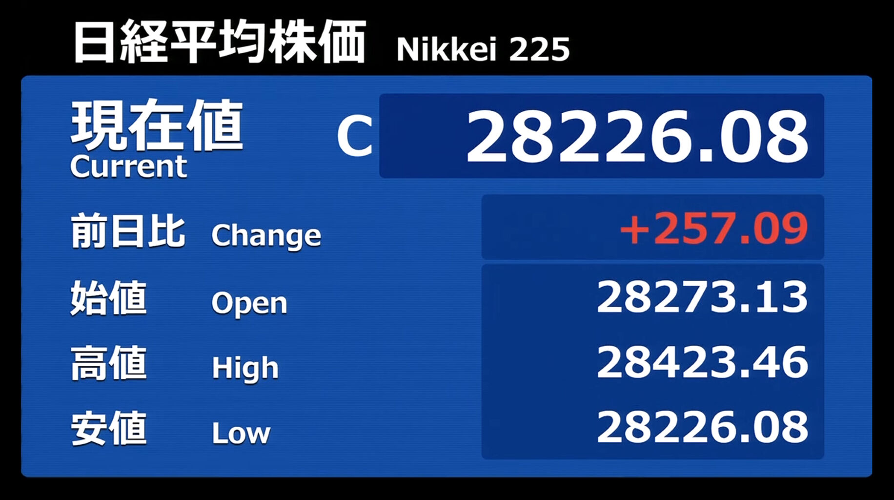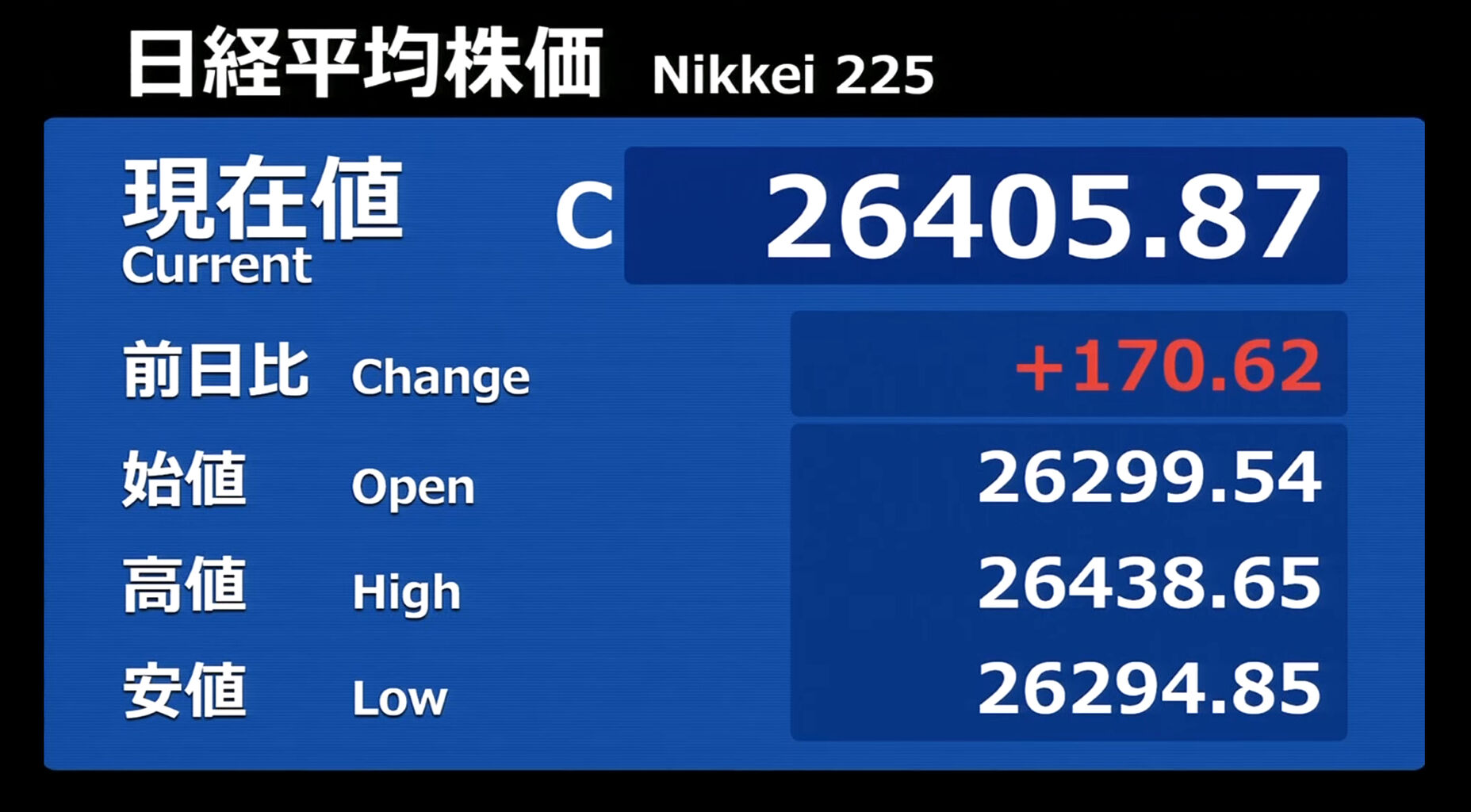 日経平均株価 終値 26,094.50(+0.83)