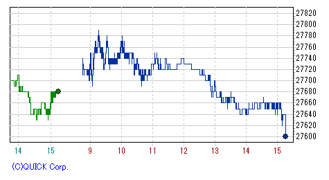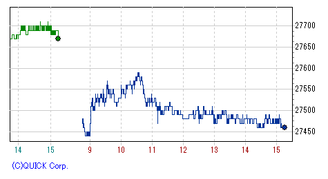 終盤にかけて、一時安値27,400円まで突っ込む場面もあったが、引けにかけてはやや下げ渋って取引を終了。