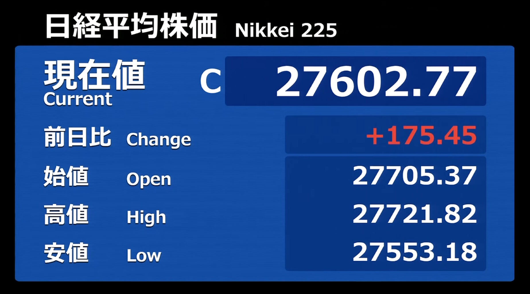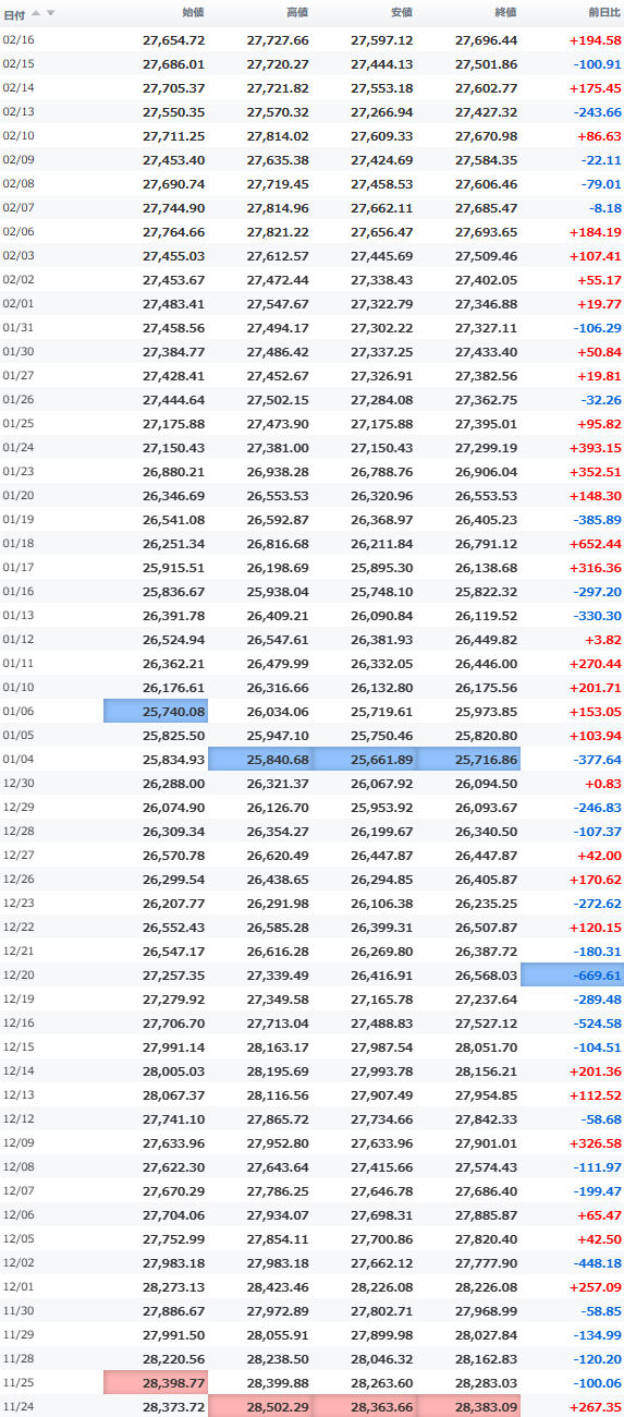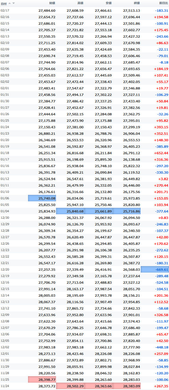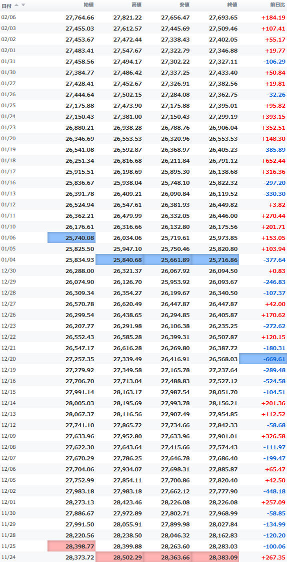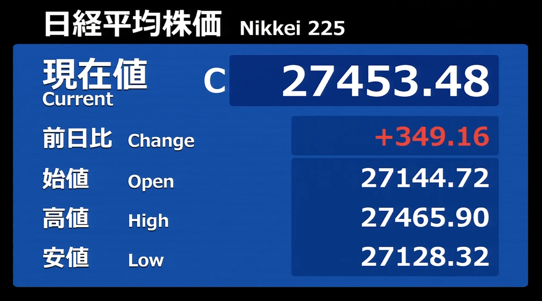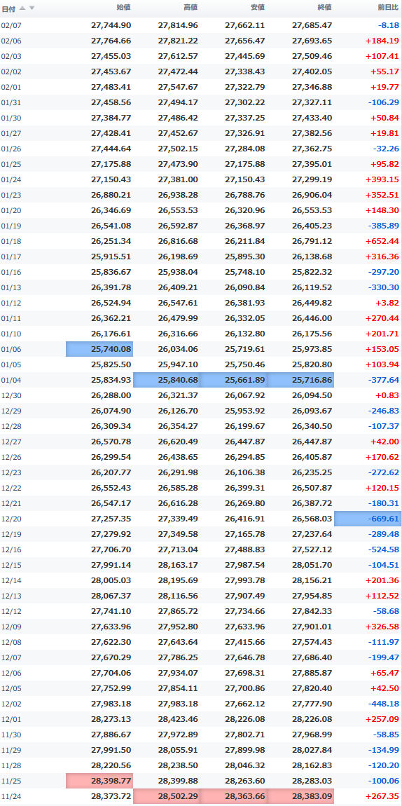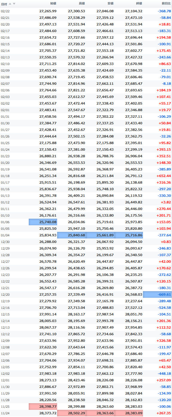 日経平均株価 終値 27,445.56(+21.60)