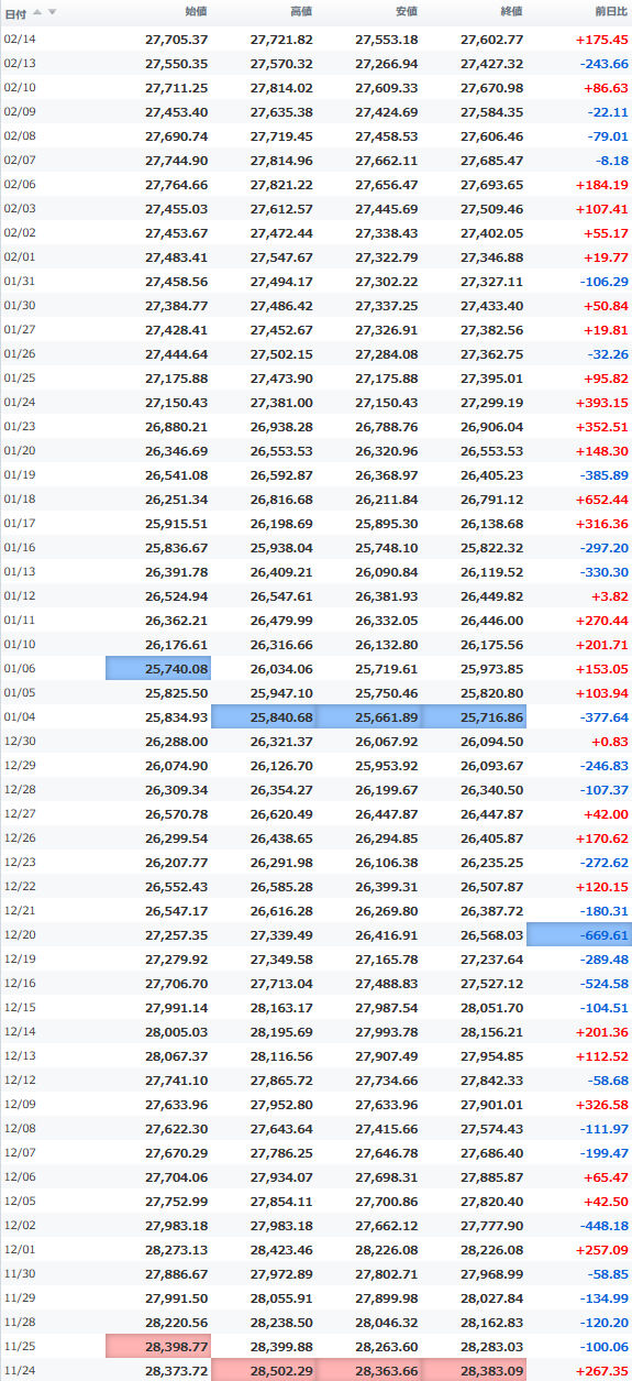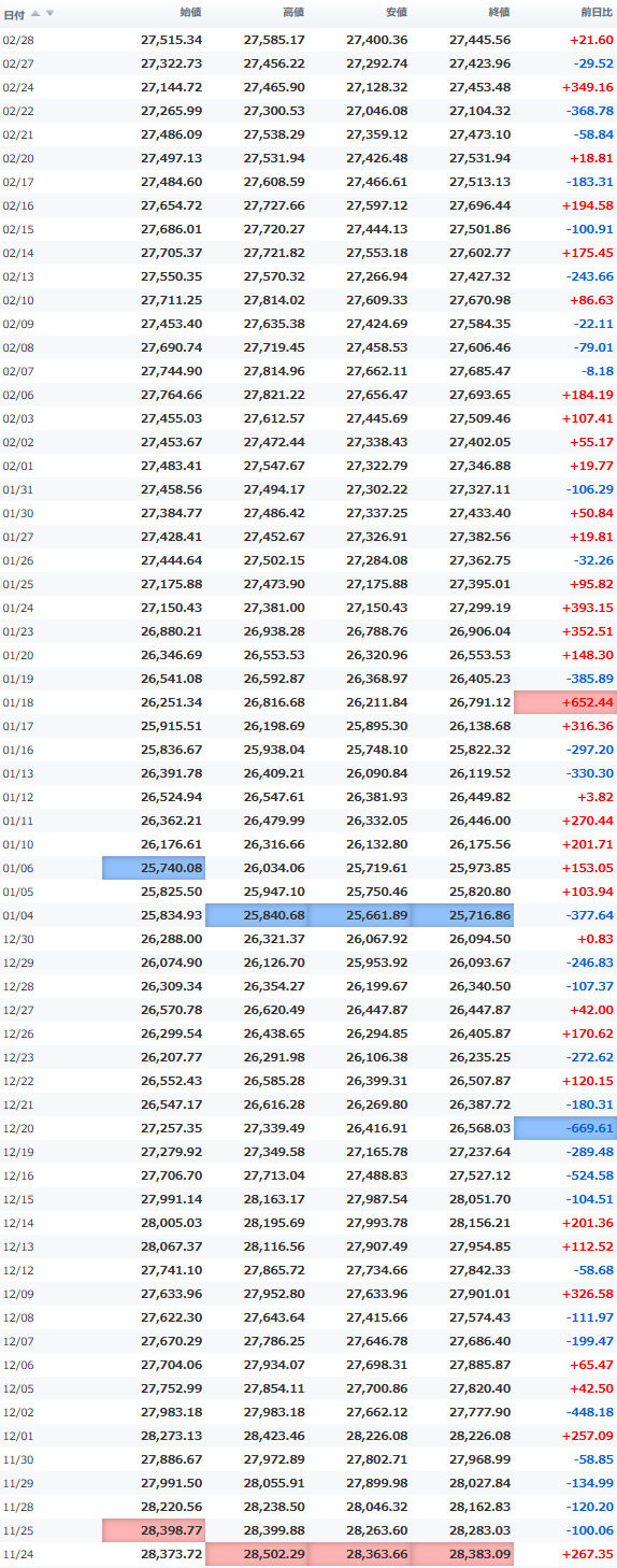 安値 27,400.36