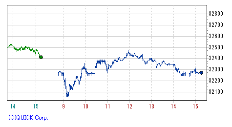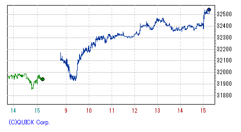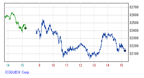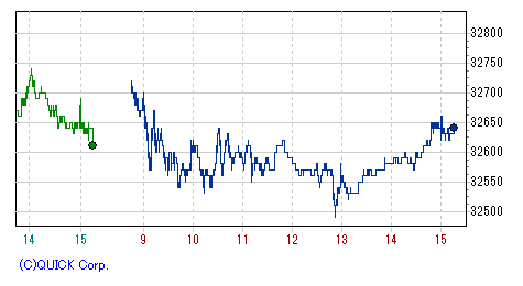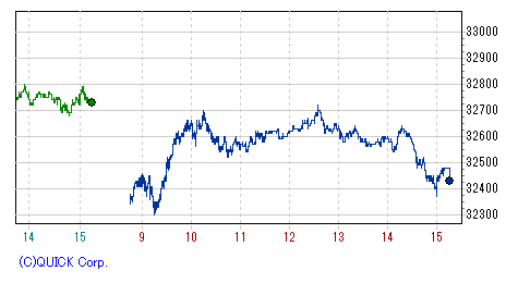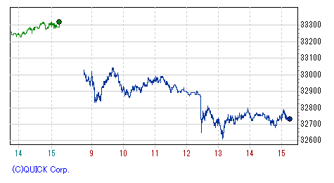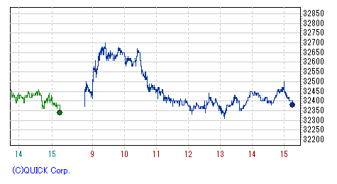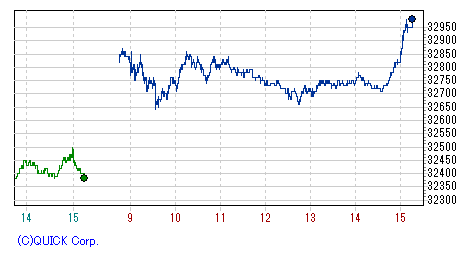 再び上げ幅を急速に拡大し、一時高値33,390円まで値を伸ばす場面もあったが、上海開場とともに失速、頭打ち。