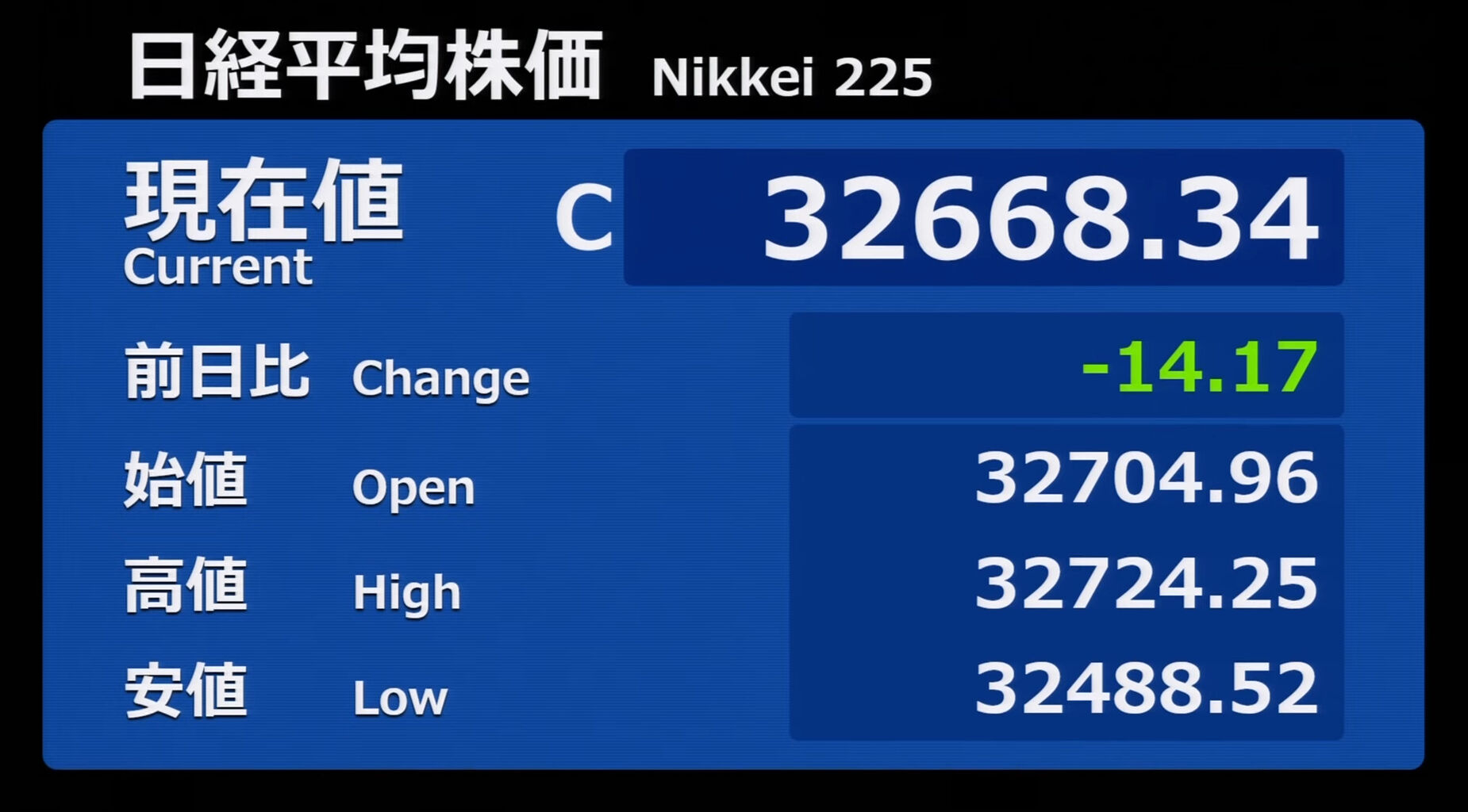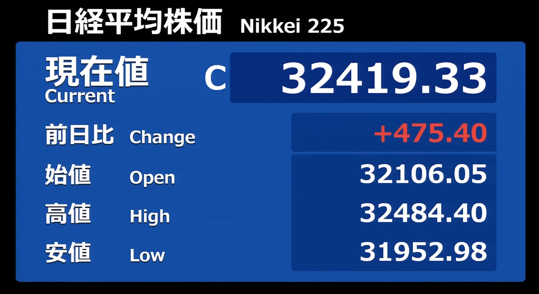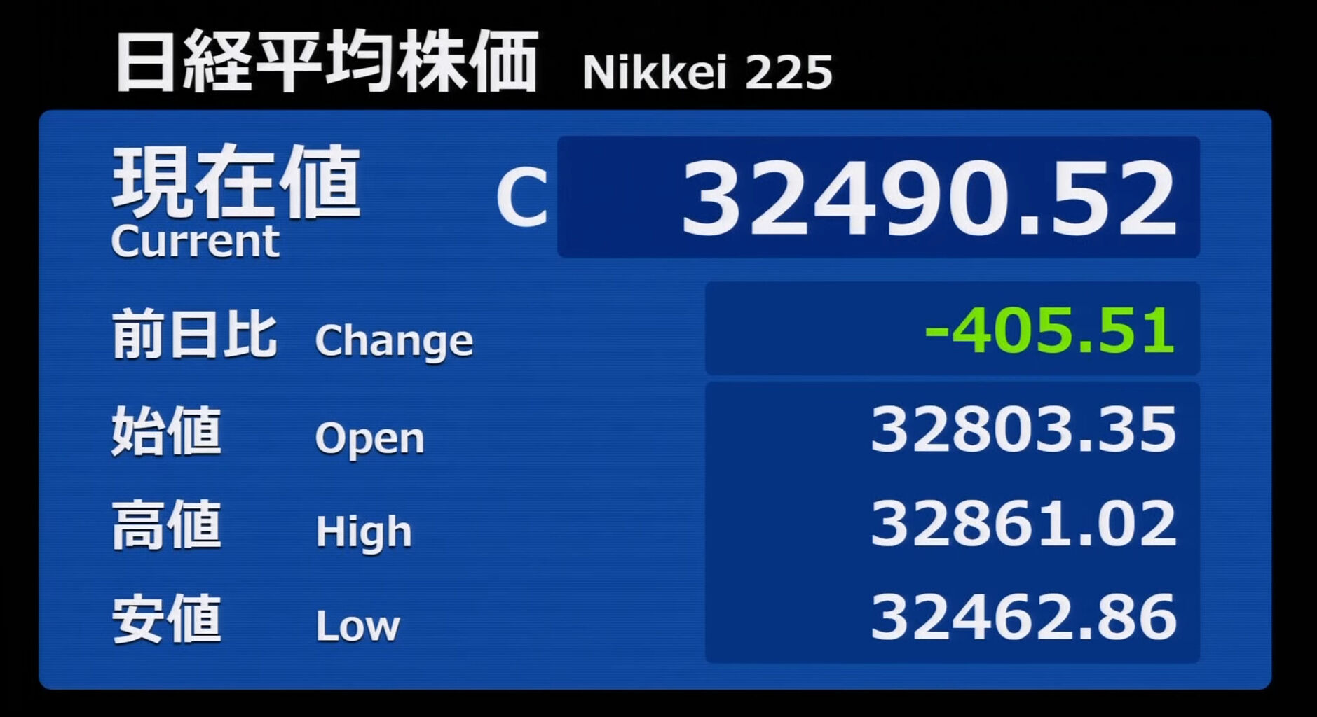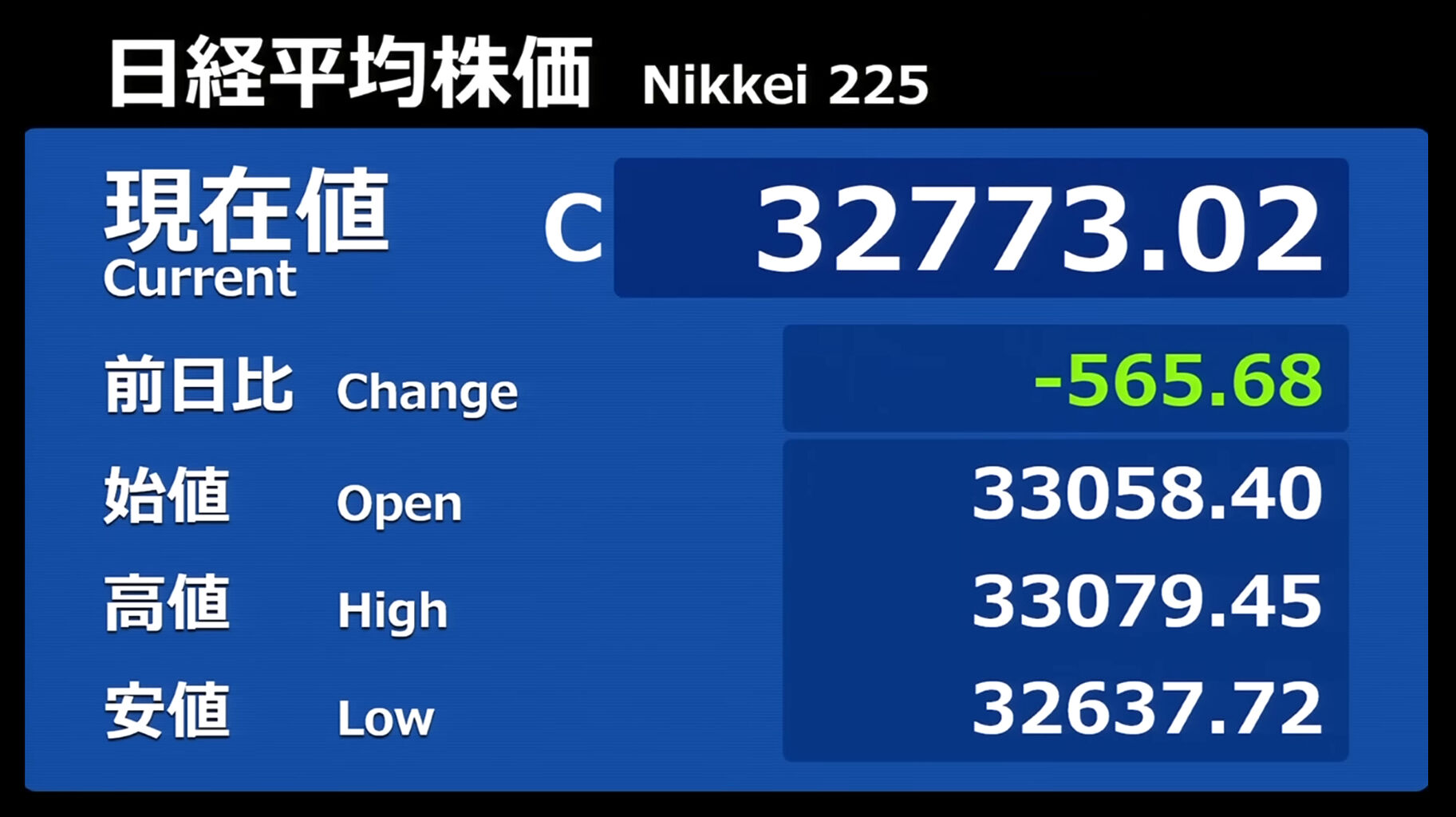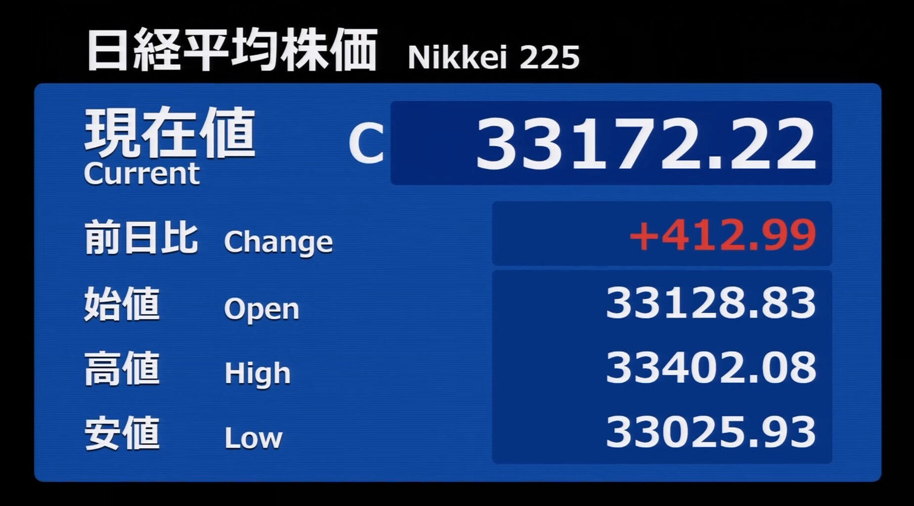 日経平均株価 終値 33,172.22(+412.99)