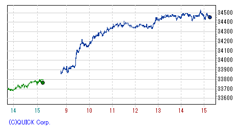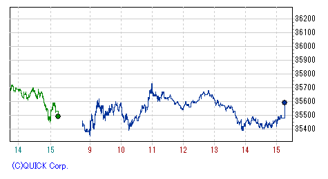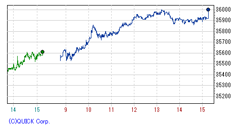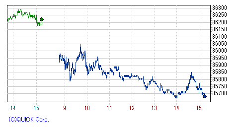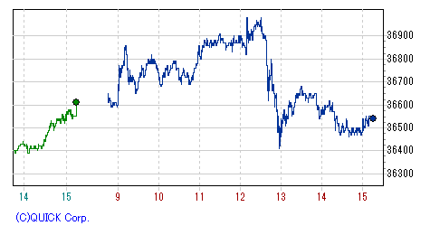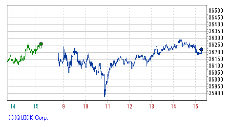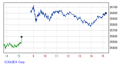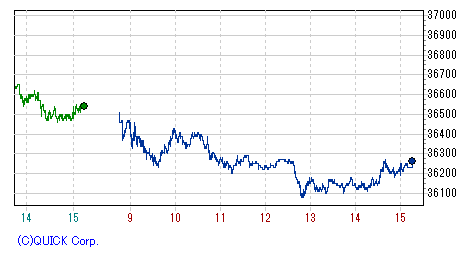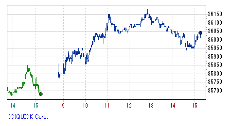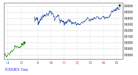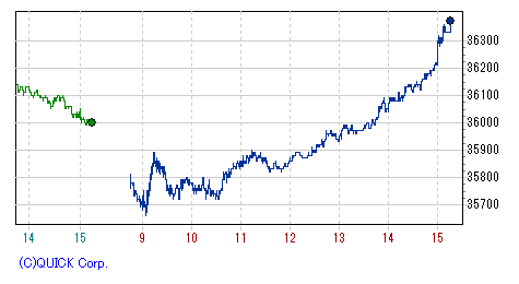 午後には一気に3万6千円を上抜けると、更に騰勢を強め、引けにかけて一段高。