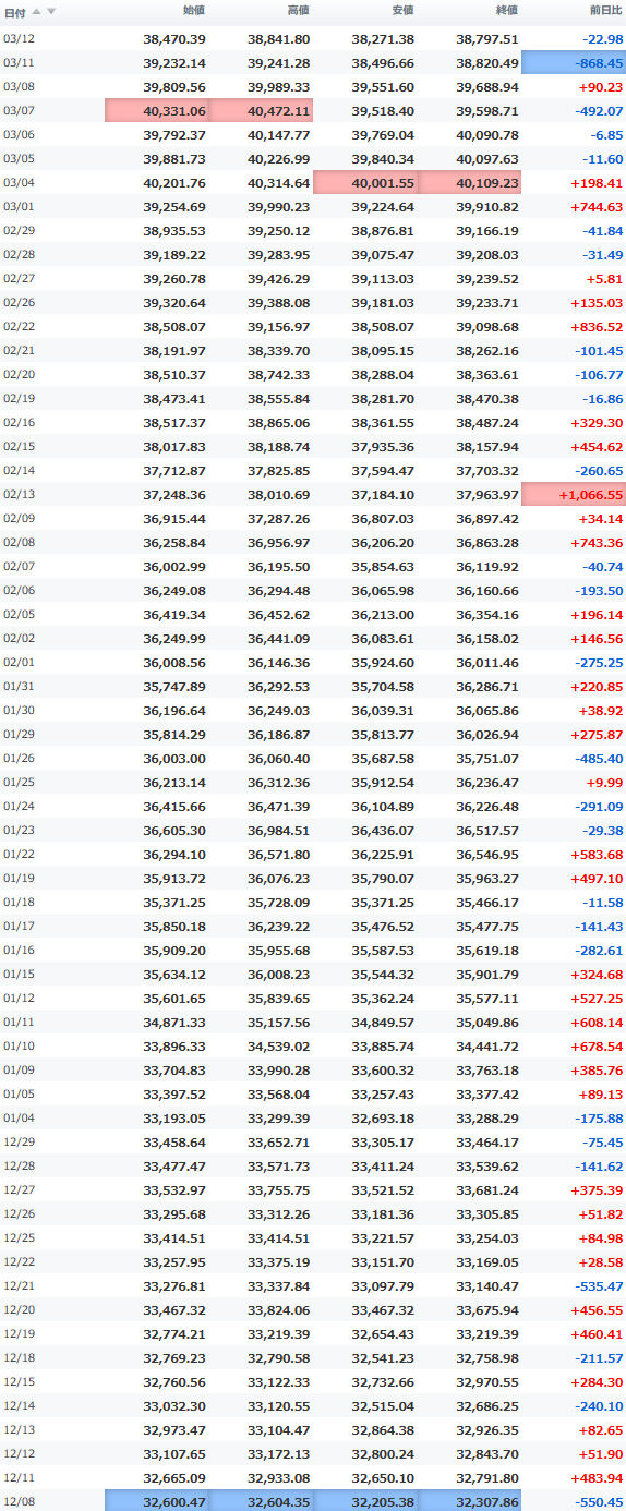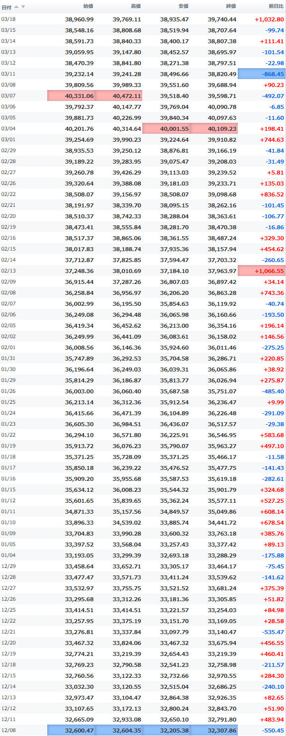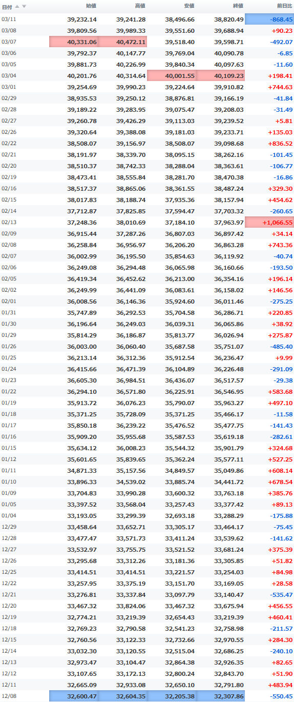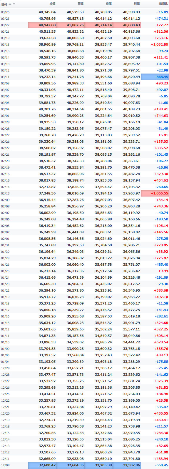 安値 40,268.11