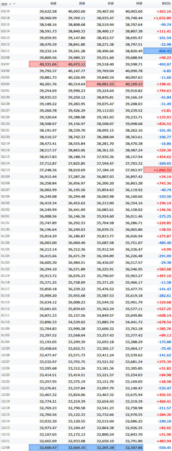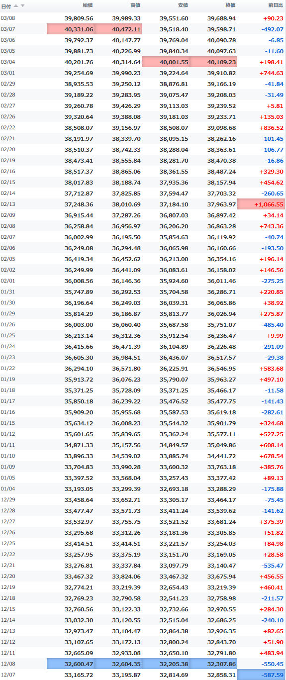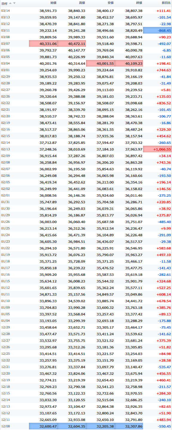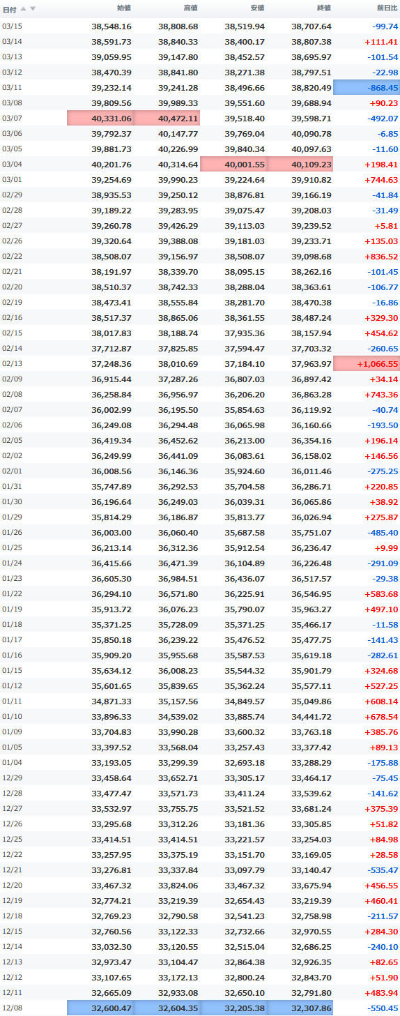 安値 40,268.11