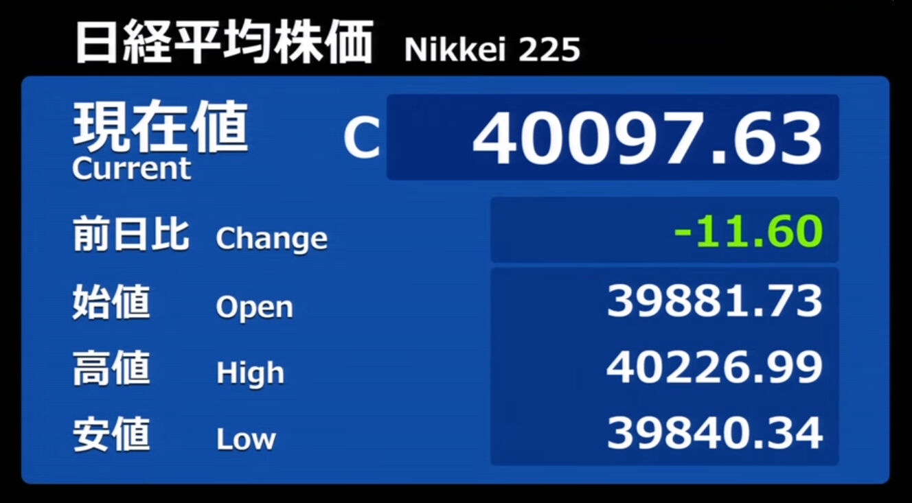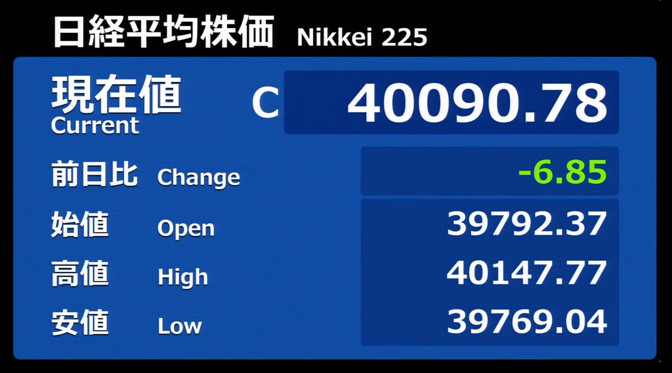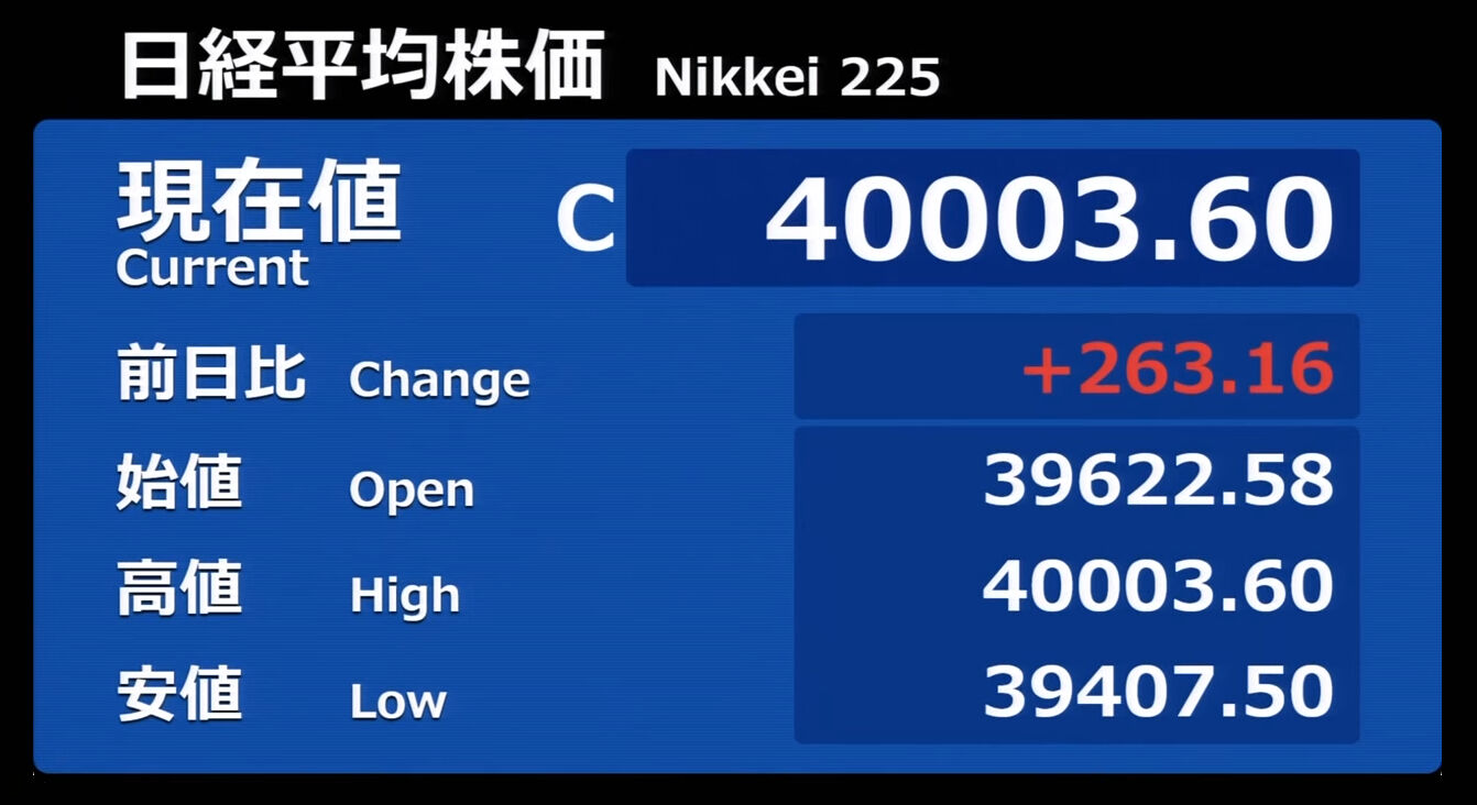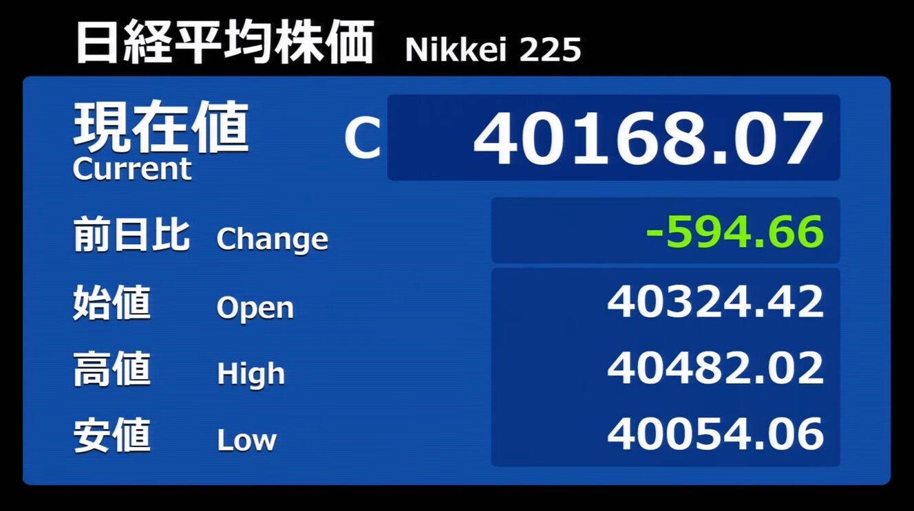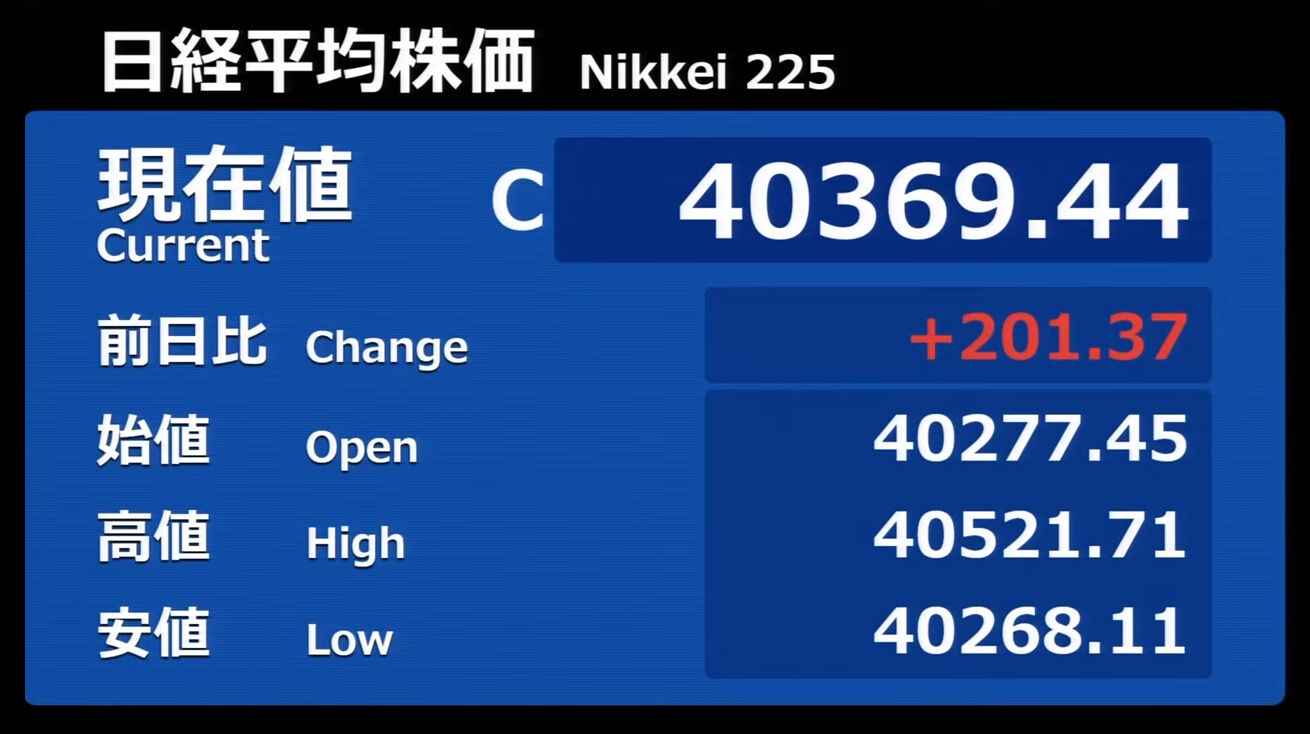 日経平均株価 終値 40,369.44(+201.37)
