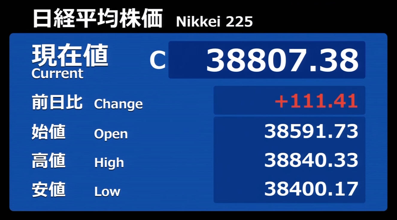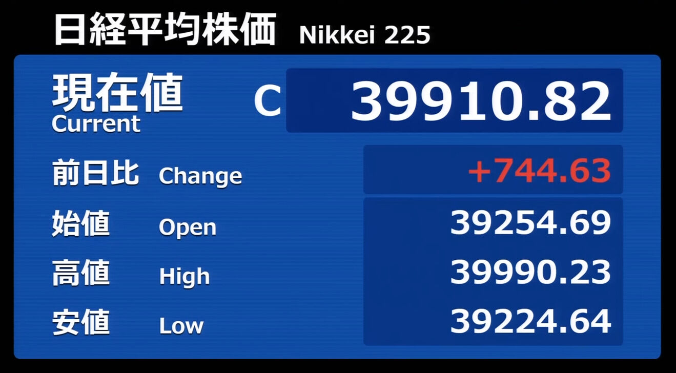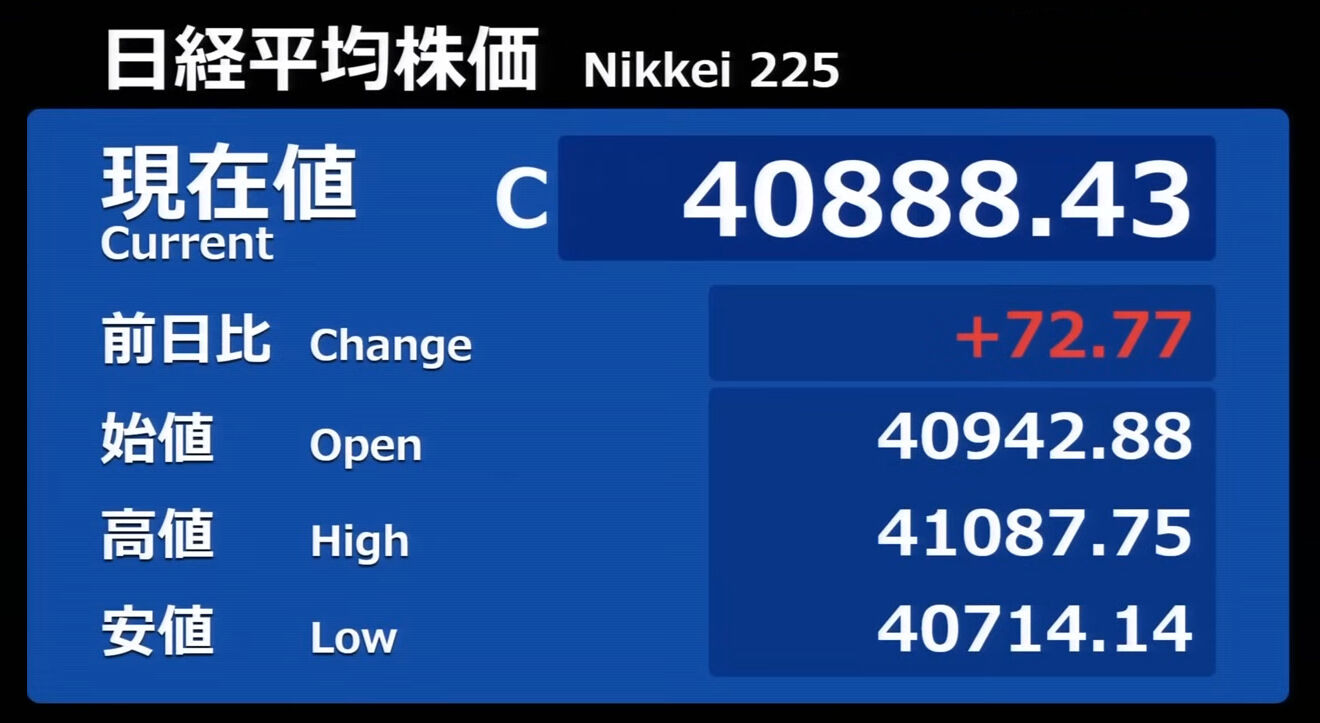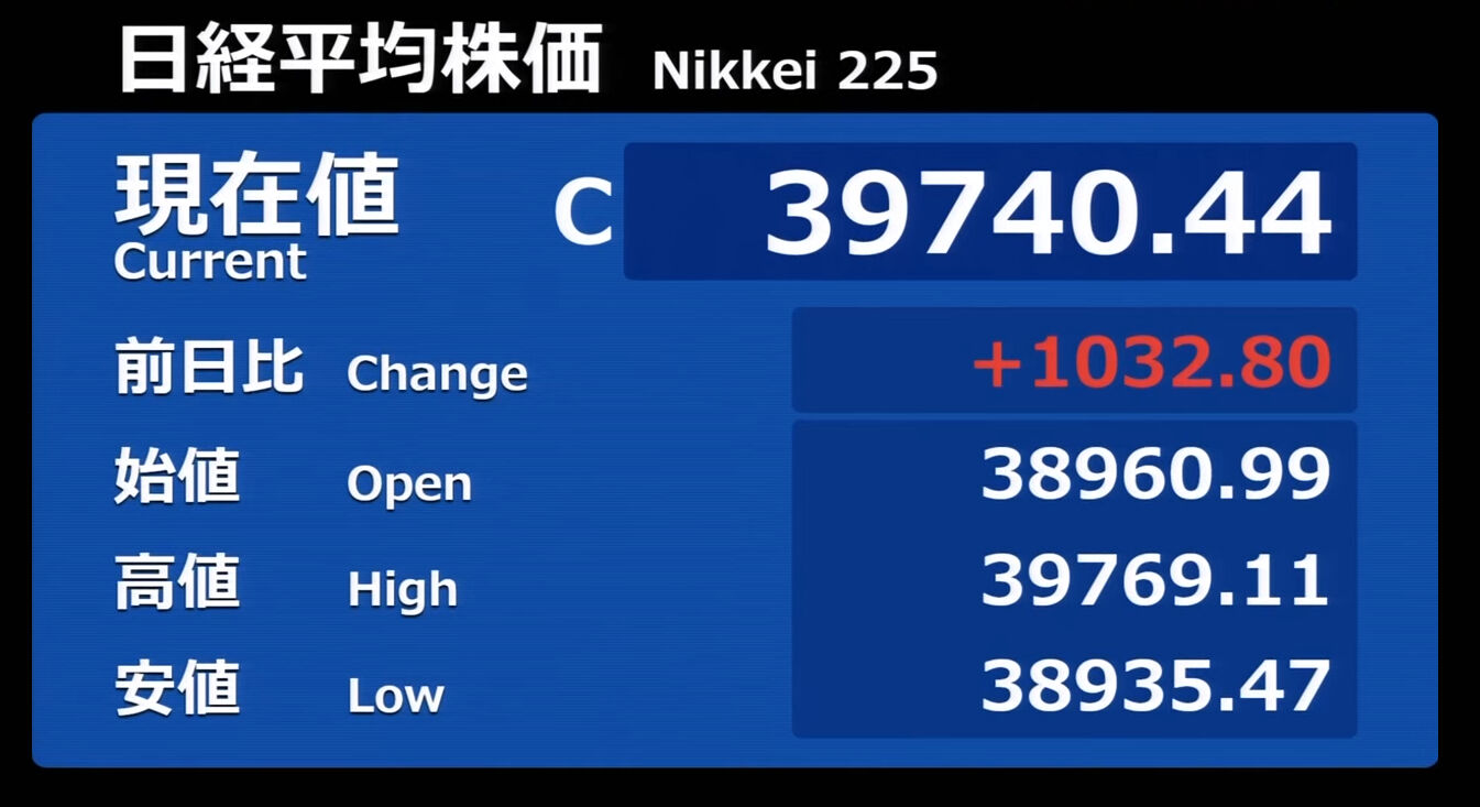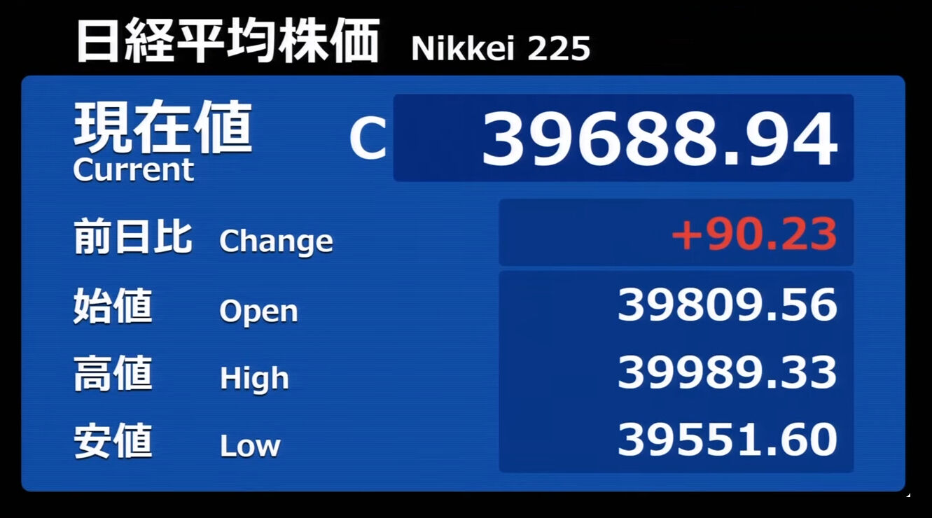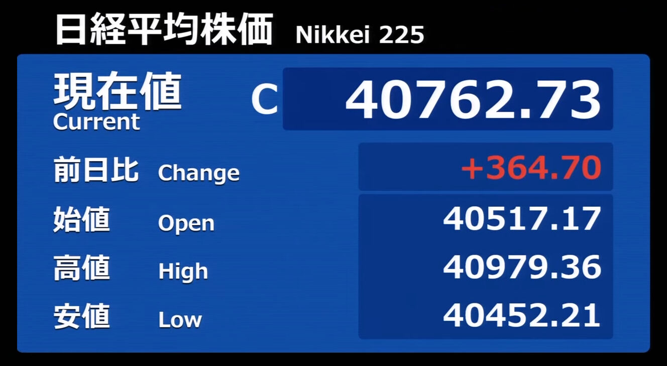日経平均株価 終値 40,369.44(+201.37)